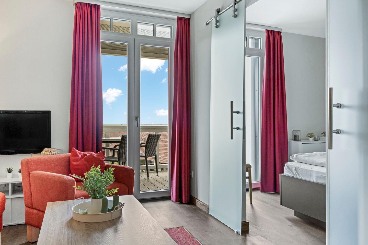 Die 53 m² große 2-Zimmer Ferienwohnung ist für bis zu 2 Personen geeignet. Besonders hervorzuheben sind die private Sauna im Apartment und der sonnige Balkon mit Blick ins Grüne und zum Meer.