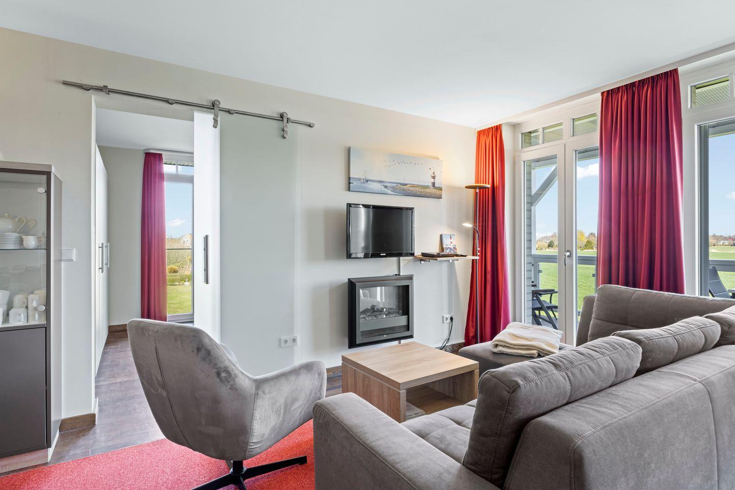 Die 73 m² große 3-Zimmer Ferienwohnung ist für bis zu 4 Personen geeignet. Besonders hervorzuheben sind die Sauna des Apartments und der großzügige Balkon mit Strandkorb und einem wundervollen Landblick in das idyllische Umland.