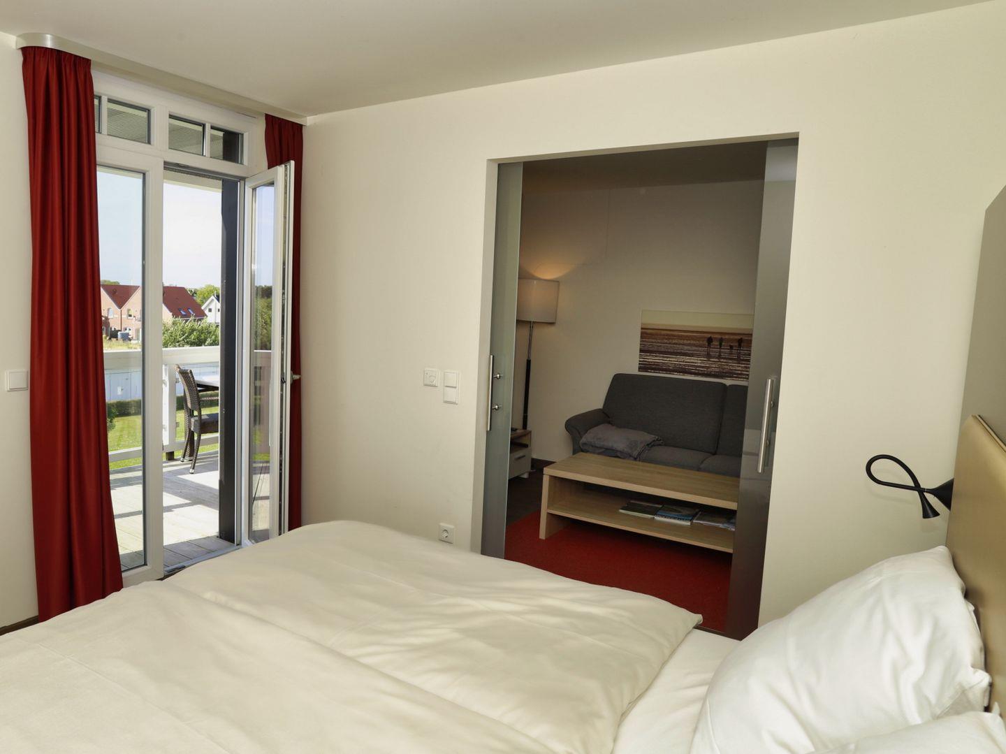 Das hochwertige Badezimmer lässt keine Wünsche offen - ausgestattet mit einem Doppelwaschtisch, begehbarer Regendusche, WC und Bidet, Handtuchwärmer, Föhn und Kosmetikspiegel sowie der großzügigen eigenen Sauna lässt sich hier wunderbar entspannen. Das Apartment verfügt über einen großzügigen, überdachten Balkon mit seitlichem Blick zum Meer und zum Nordseedeich. Kostenfreies WLAN steht euch zur Verfügung.