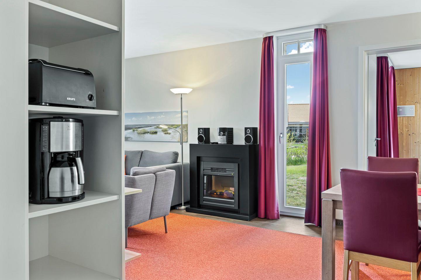 Das moderne Nichtraucher-Apartment verfügt über kostenfreies WLAN und eine voll ausgestattete offene Küche mit Geschirrspüler, Kaffeefilter- und Kaffeepad Maschine (Senseo), Toaster, Wasserkocher, Tiefkühlfach und Backofen. Im Schlafzimmer stehen euch ein Doppelbett (1,80 x 2,00 m) und Flatscreen-TV, im Wohnbereich ein weiterer Flatscreen-TV, eine HiFi-Anlage, Telefon und ein Elektrokamin zur Verfügung. Zur hochwertigen Ausstattung der Ferienwohnung gehören außerdem ein Minisafe und Gesellschaftsspiele. Ein Kinderbett kann gegen Entgelt aufgestellt werden und auf Wunsch könnt ihr einen Hochstuhl hinzubuchen.