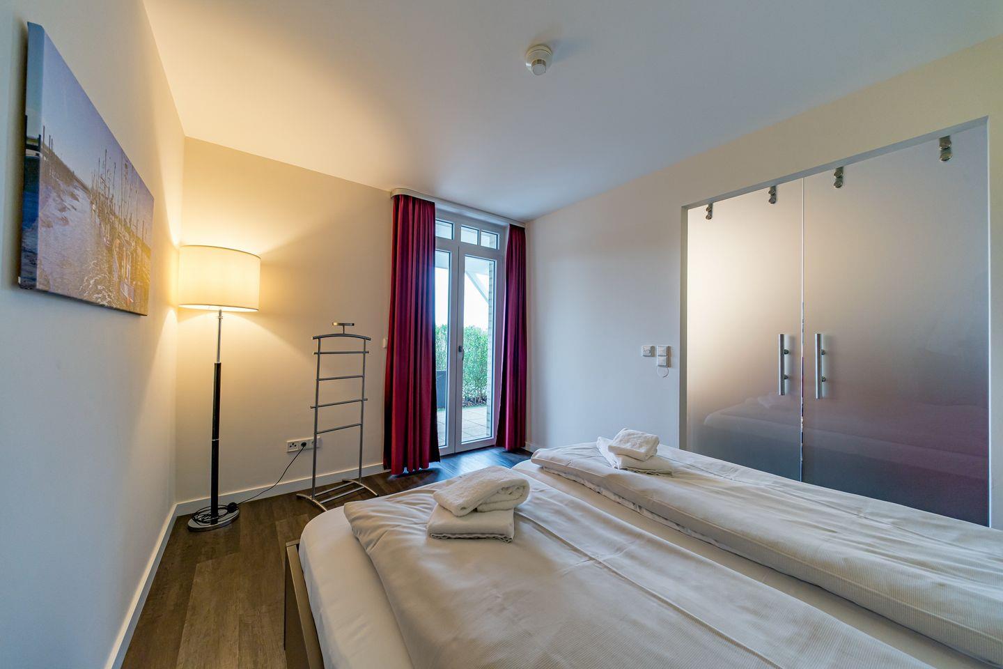 Die 66 m² große 2-Zimmer Ferienwohnung ist für bis zu 2 Personen geeignet. Besonders hervorzuheben ist das exklusive Badezimmer mit großzügiger privater Sauna und die große Terrasse mit Landblick und Strandkorb.