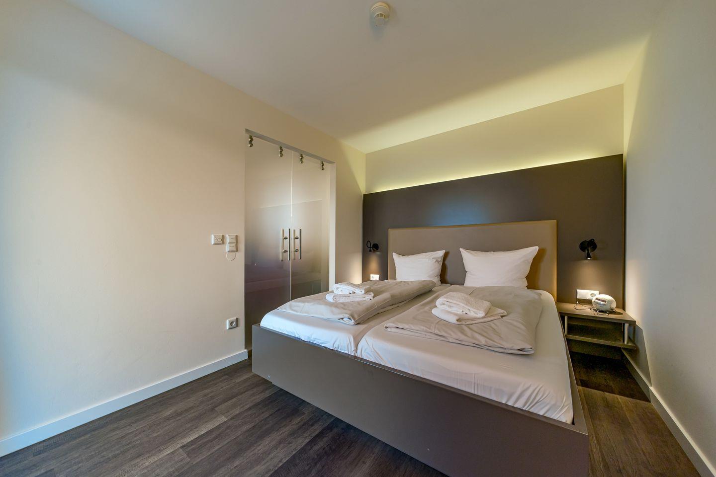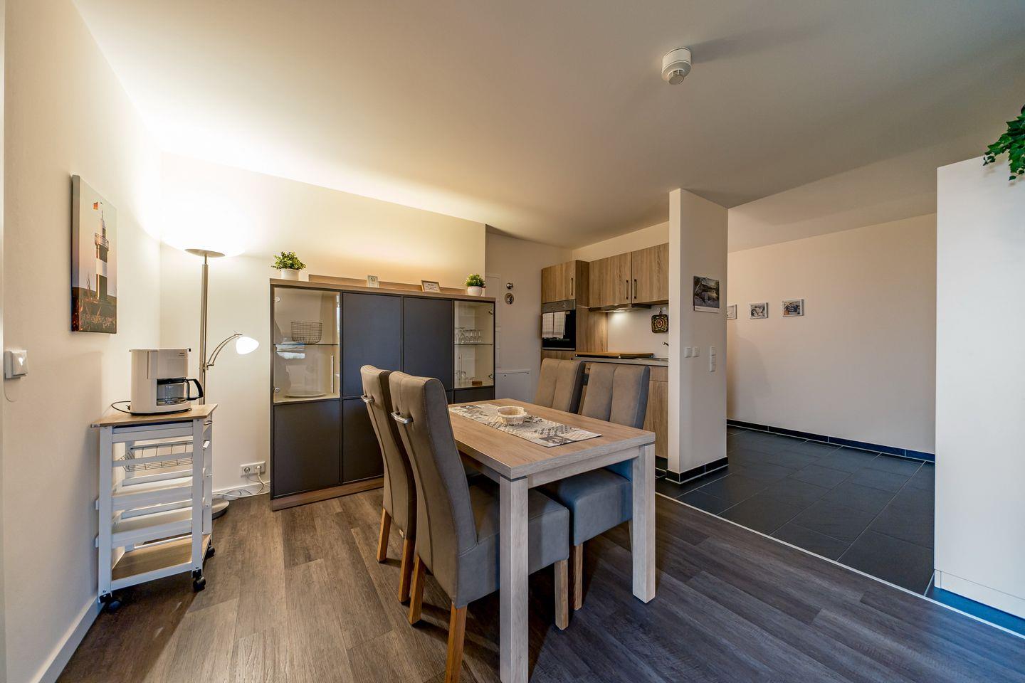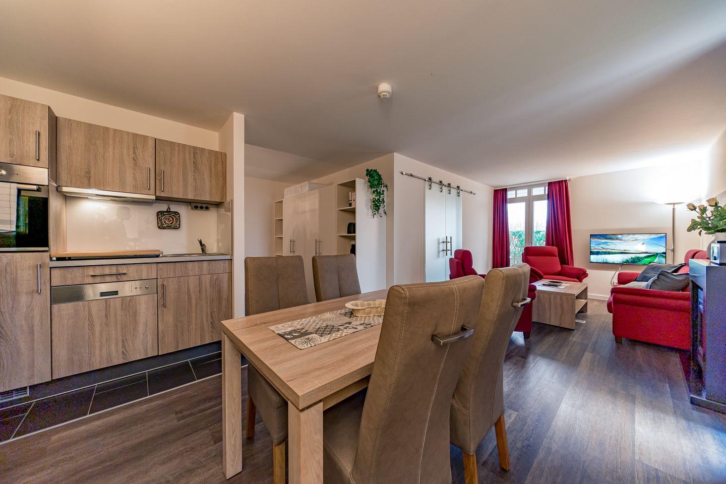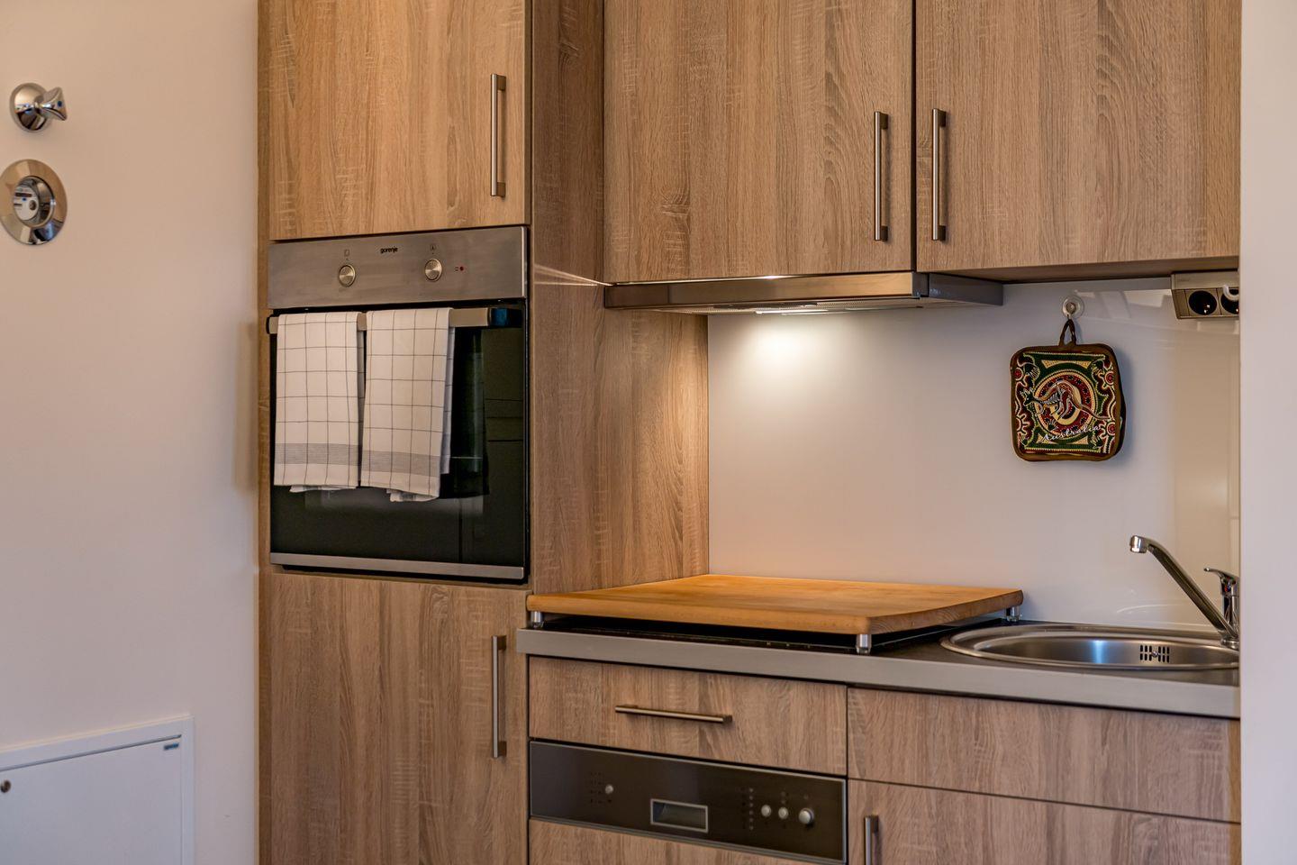 Das moderne Nichtraucher-Apartment verfügt über kostenfreies WLAN und eine voll ausgestattete offene Küche mit Geschirrspüler, Kaffeemaschine, zusätzlicher Kaffeekapsel-Maschine (Dolce Gusto), Toaster, Eierkocher, Wasserkocher, Tiefkühlfach, Backofen und Mikrowelle. Im Schlafzimmer steht euch ein Doppelbett (1,80 x 2,00 m) und ein Kleiderständer, im Wohnbereich ein Flatscreen-TV, eine HiFi-Anlage, und ein Elektrokamin zur Verfügung. Zur Ausstattung der Ferienwohnung gehören außerdem diverse Bücher und Gesellschaftsspiele.