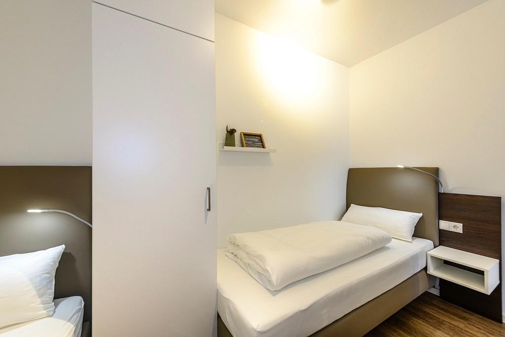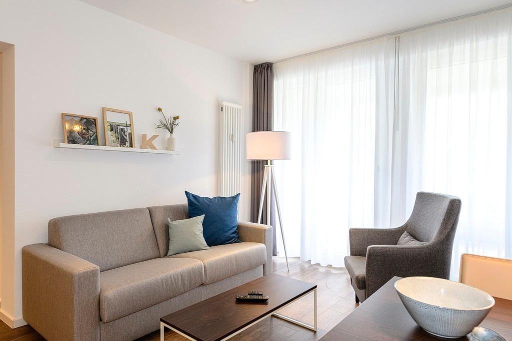 Das geschmackvoll eingerichtete Nichtraucher-Apartment verfügt über kostenfreies WLAN. Der Wohnbereich mit Schlafcouch, bietet eine voll ausgestattete offene Küchenzeile mit Geschirrspüler, Gefrierfach, Kaffeemaschine, Toaster, Wasserkocher und Mikrowelle mit Backfunktion sowie einen großen Flatscreen-TV und ein Radio. Das Apartment verfügt über einen Esstisch für 5 Personen und einen behaglichen Sitzbereich. Zwei separate Schlafzimmer stehen euch zur Verfügung. Eines davon verfügt über ein Doppelbett und einen eigenen Flatscreen-TV, ein weiteres Alkoven- Schlafzimmer über zwei Einzelbetten. Ein Kinderbett kann gegen Entgelt aufgestellt werden.