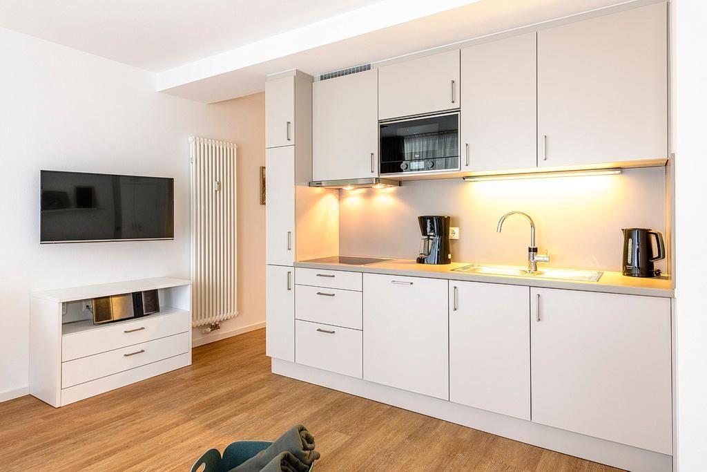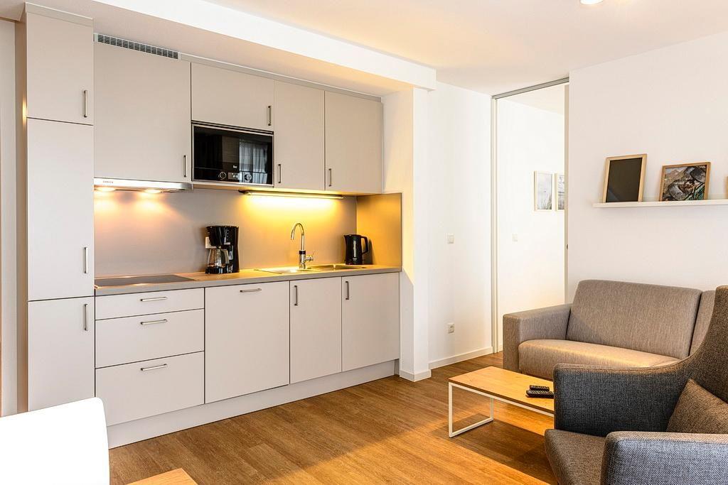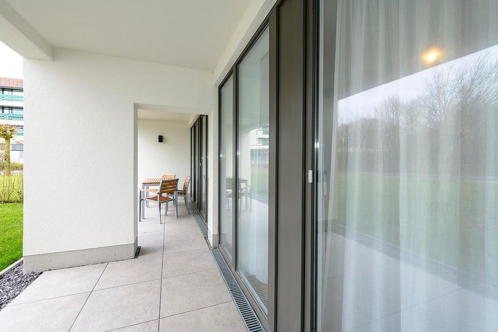 Das geschmackvoll eingerichtete Nichtraucher-Apartment verfügt über kostenfreies WLAN. Der Wohnbereich bietet eine voll ausgestattete offene Küchenzeile mit Geschirrspüler, Gefrierfach, Kaffeemaschine, Toaster, Wasserkocher und Mikrowelle mit Backfunktion sowie einen großen Flatscreen-TV und ein Radio. Das Apartment verfügt über einen Esstisch für 5 Personen und einen behaglichen Sitzbereich. Im separaten Schlafzimmer steht euch ein Doppelbett mit eigenem Flatscreen-TV zur Verfügung. Im stilvollen Badezimmer befinden sich eine große begehbare Dusche sowie ein Waschtisch mit Föhn und Kosmetikspiegel. Nach einem erlebnisreichen Urlaubstag entspannt ihr auf der überdachten und mit Gartenmöbeln für 5 Personen ausgestatteten Terrasse.