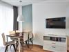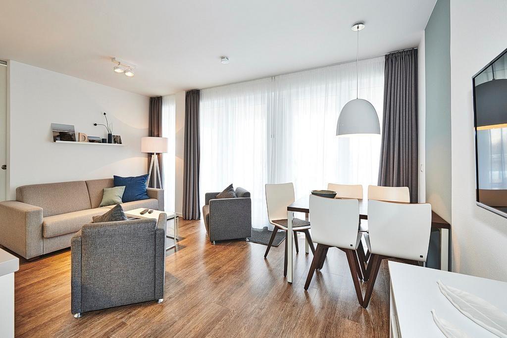 Das geschmackvoll eingerichtete Nichtraucher-Apartment verfügt über kostenfreies WLAN. Der Wohnbereich bietet eine voll ausgestattete offene Küchenzeile mit Geschirrspüler, Gefrierfach, Kaffeemaschine, Toaster, Wasserkocher und Mikrowelle mit Backfunktion sowie einen großen Flatscreen-TV und ein Radio. Das Apartment verfügt über einen Esstisch für 5 Personen und einen behaglichen Sitzbereich. Zwei separate Schlafzimmer mit jeweils einem Doppelbett stehen euch zur Verfügung. Eines davon verfügt zudem über einen eigenen Flatscreen-TV. Im stilvollen Badezimmer befinden sich eine große begehbare Dusche sowie ein Waschtisch mit Föhn und Kosmetikspiegel. Nach einem erlebnisreichen Urlaubstag entspannt ihr auf dem überdachten und mit Gartenmöbeln für 5 Personen ausgestatteten Balkon. Der Balkon ist vom Wohnbereich und vom Hauptschlafzimmer aus zugänglich.