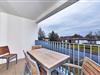 Die 59 m² große 3-Zimmer Ferienwohnung ist für bis zu 5 Personen geeignet. Besonders hervorzuheben ist der überdachte Balkon, ähnlich einer Loggia, in sonniger West-Lage. Hier lässt sich bis zum Abend die Sonne genießen.