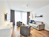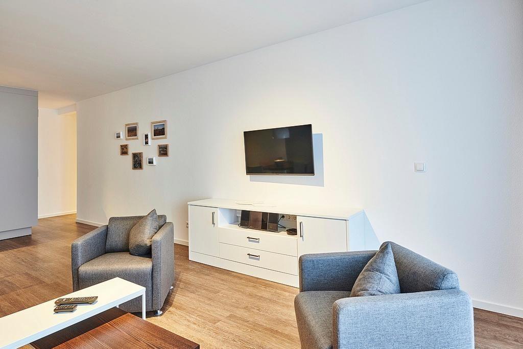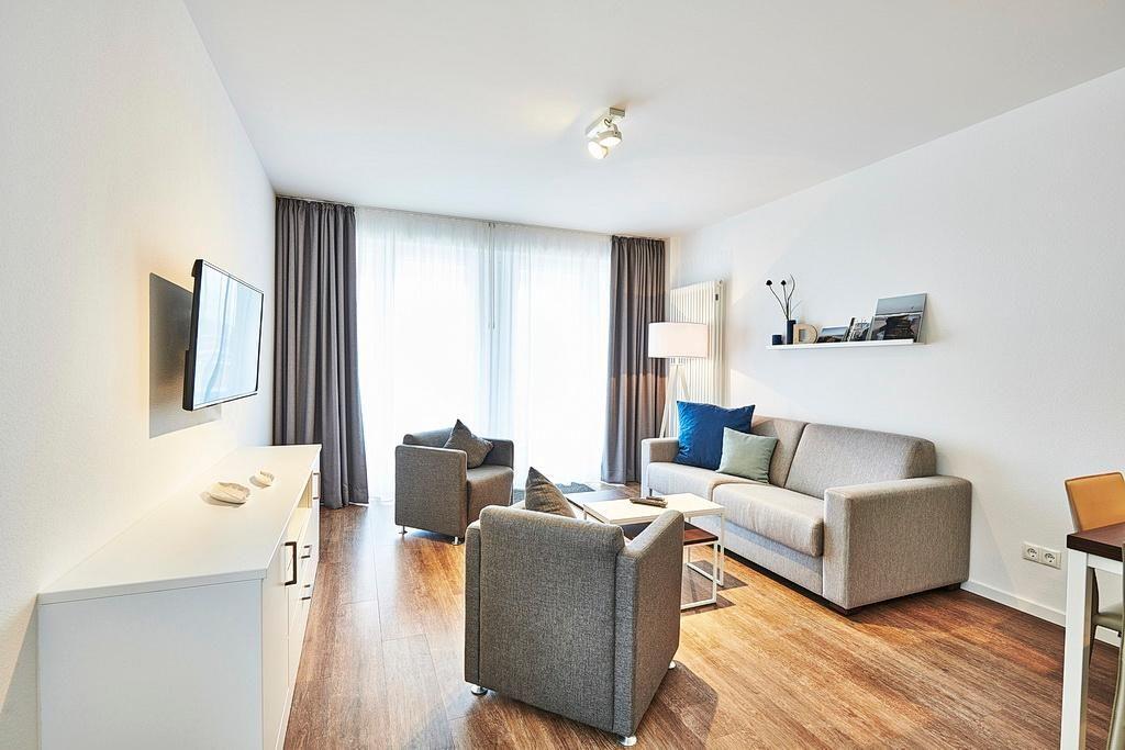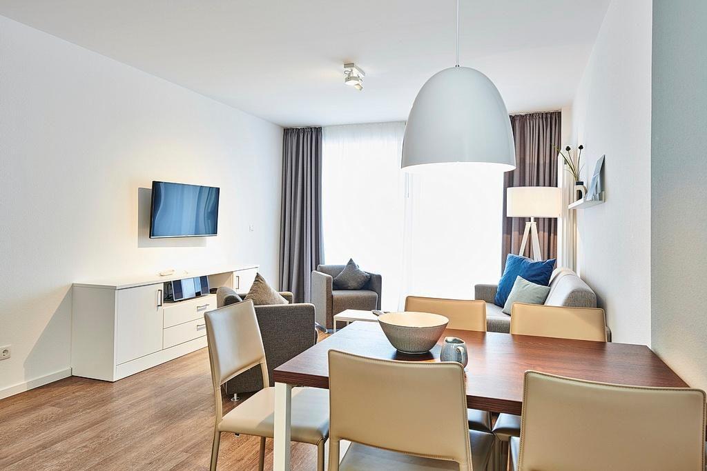 Das geschmackvoll eingerichtete Nichtraucher-Apartment verfügt über kostenfreies WLAN. Der Wohnbereich mit Schlafcouch, bietet eine voll ausgestattete offene Küchenzeile mit Geschirrspüler, Gefrierfach, Kaffeemaschine, Toaster, Wasserkocher und Mikrowelle mit Backfunktion sowie einen großen Flatscreen-TV und ein Radio. Das Apartment verfügt über einen Esstisch für 4 Personen und einen behaglichen Sitzbereich. Zwei separate Schlafzimmer stehen euch zur Verfügung. Eines davon verfügt über ein Doppelbett und einen eigenen Flatscreen-TV, ein weiteres über ein Etagenbett. Im stilvollen Badezimmer befinden sich eine große begehbare Dusche sowie ein Waschtisch mit Föhn und Kosmetikspiegel. Nach einem erlebnisreichen Urlaubstag lässt es sich auf dem überdachten und mit Gartenmöbeln ausgestatteten Balkon wunderbar entspannen.