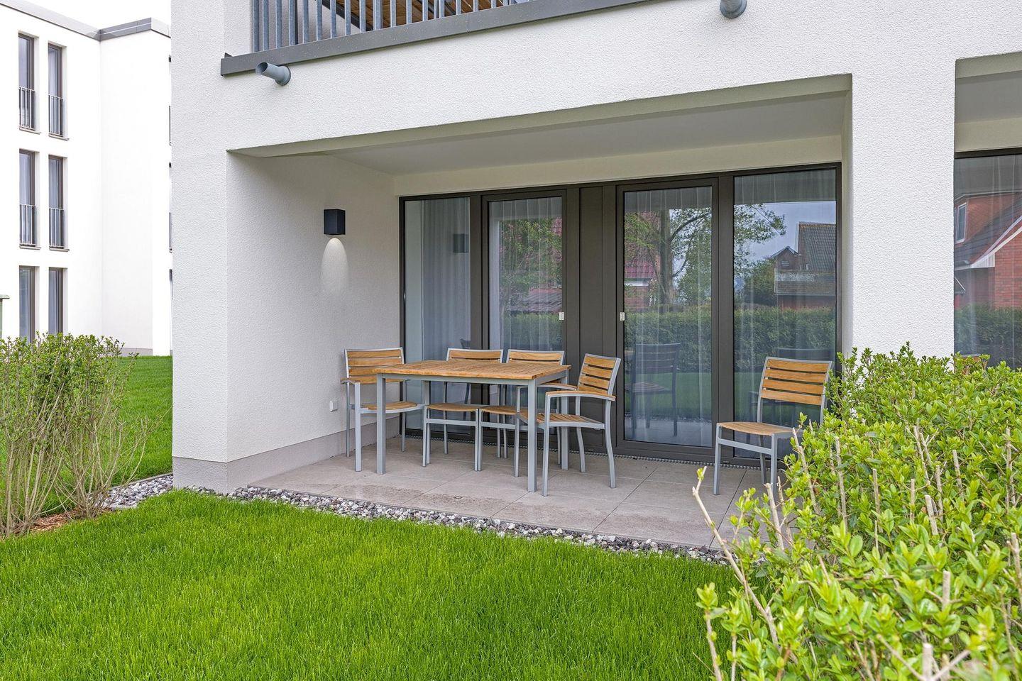 Strandnahes Apartment mit Terrasse inkl. Parkplatz, Schwimmbad- & Saunanutzung