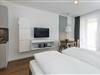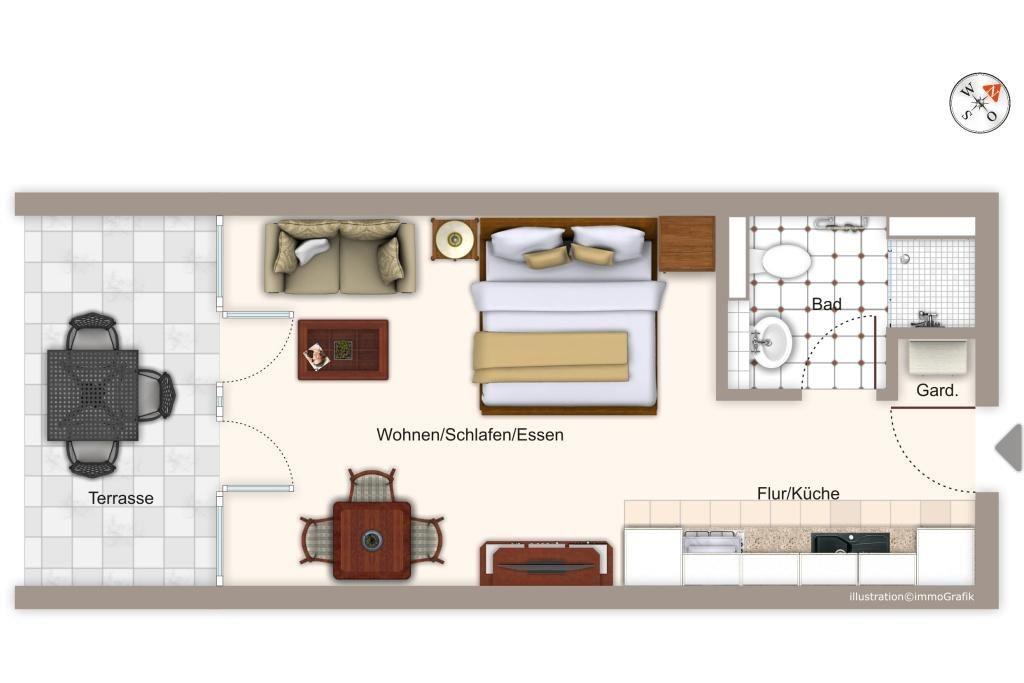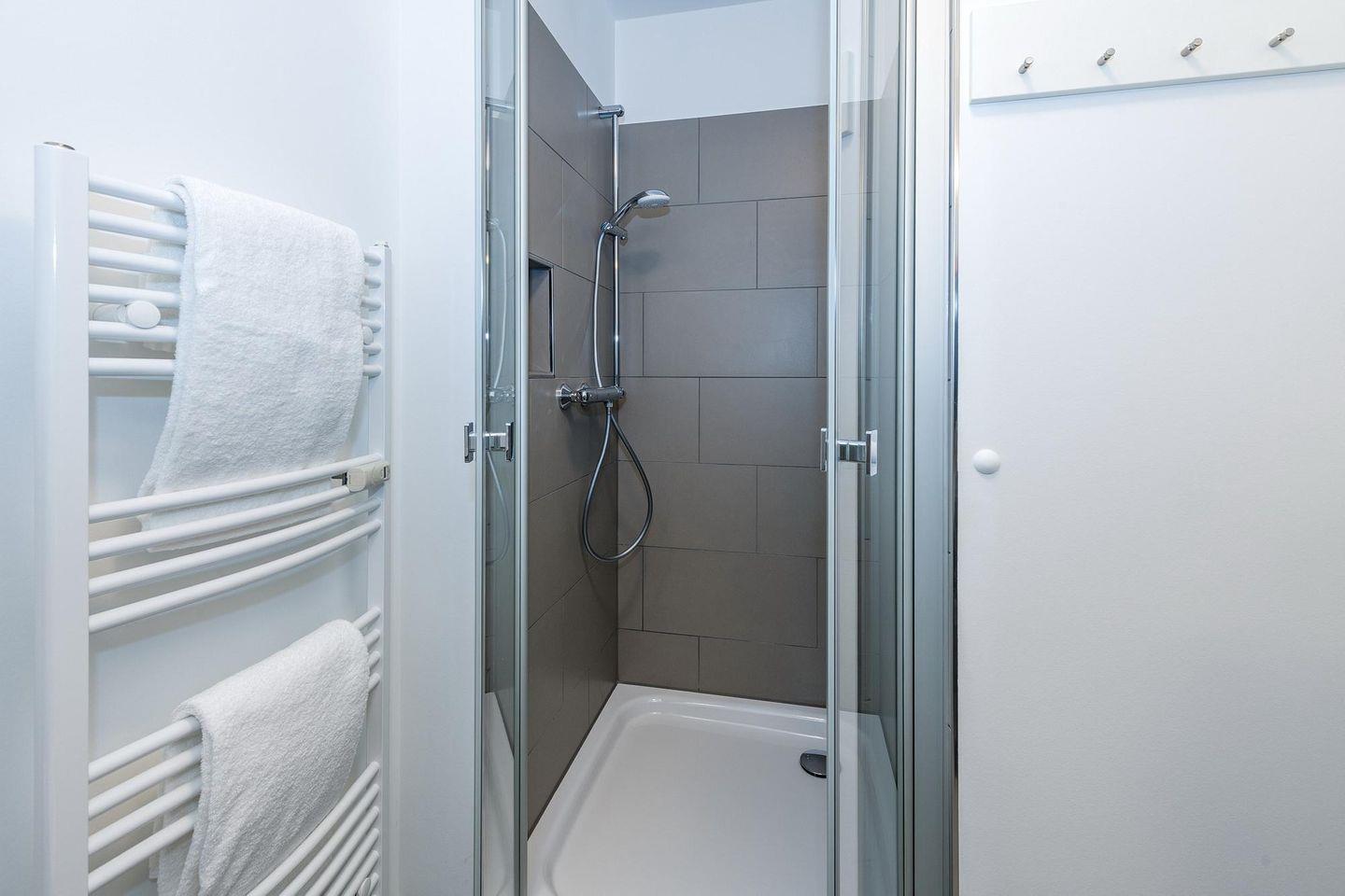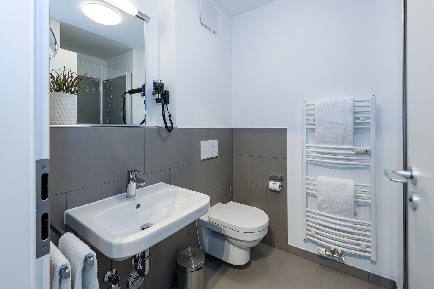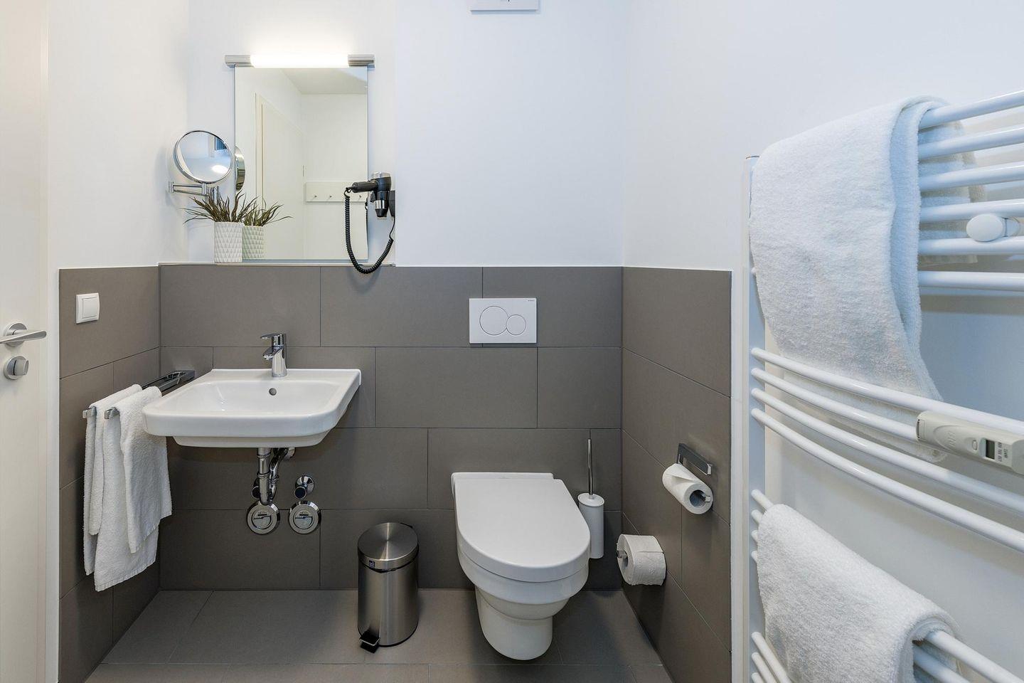 Das geschmackvoll eingerichtete Nichtraucher-Apartment verfügt über kostenfreies WLAN. Der Wohn-Schlafbereich bietet eine voll ausgestattete offene Küchenzeile mit Geschirrspüler, Gefrierfach, Backofen, Kaffeemaschine, Toaster, Wasserkocher und Mikrowelle sowie ein Doppelbett, einen großen Flatscreen-TV und ein Radio. Das Apartment verfügt über einen Esstisch für 3 Personen und einen behaglichen kleinen Sitzbereich mit Schlafcouch. Ein Kinderbett kann gegen Entgelt aufgestellt werden. Im stilvollen Badezimmer befinden sich eine große begehbare Dusche sowie ein Waschtisch mit Föhn und Kosmetikspiegel. Nach einem erlebnisreichen Urlaubstag entspannt ihr auf der überdachten und mit Gartenmöbeln für 3 Personen ausgestatteten Balkon.