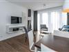 Das geschmackvoll eingerichtete Nichtraucher-Apartment verfügt über kostenfreies WLAN. Der Wohnbereich mit einer Schlafcouch bietet eine voll ausgestattete offene Küchenzeile mit Geschirrspüler, Gefrierfach, Kaffeemaschine, Toaster, Wasserkocher, Mikrowelle und Backofen sowie einen großen Flatscreen-TV und ein Radio. Das Apartment verfügt über einen Esstisch für 5 Personen und einen behaglichen Sitzbereich. Zwei separate Schlafzimmer stehen euch zur Verfügung. Eines davon verfügt über ein Doppelbett und einen eigenen Flatscreen-TV, ein weiteres über zwei Einzelbetten. Ein Kinderbett kann gegen Entgelt aufgestellt werden. Im stilvollen Badezimmer befinden sich eine große begehbare Dusche sowie ein Waschtisch mit Föhn und Kosmetikspiegel. Nach einem erlebnisreichen Urlaubstag entspannt ihr auf dem überdachten und mit Gartenmöbeln für 4 Personen ausgestatteten Terrasse.