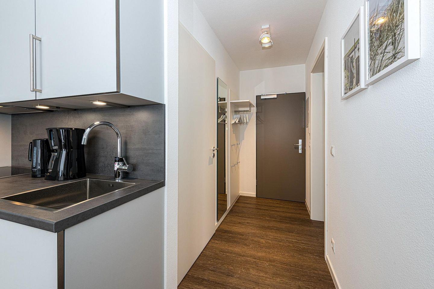 Strandnahes Ferienapartment mit Terrasse, Parkplatz, Schwimmbad- & Saunanutzung