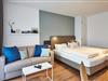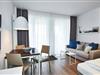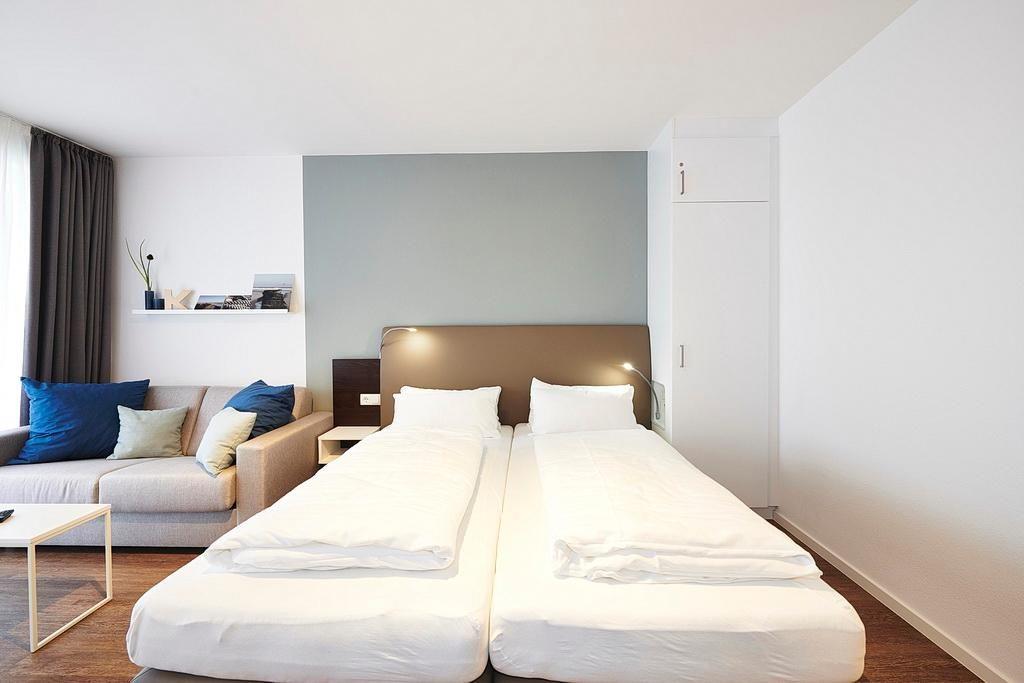 Das geschmackvoll eingerichtete Nichtraucher-Apartment verfügt über kostenfreies WLAN. Der Wohn- und Schlafbereich bietet eine voll ausgestattete offene Küchenzeile mit Geschirrspüler, Gefrierfach, Kaffeemaschine, Toaster, Wasserkocher und Mikrowelle mit Backfunktion sowie ein Doppelbett und eine Schlafcouch (1,10 x 1,90 m), einen großen Flatscreen-TV und ein Radio. Das Apartment verfügt über einen Esstisch für 3 Personen und einen behaglichen kleinen Sitzbereich. Ein Kinderbett kann gegen Entgelt aufgestellt werden. Im stilvollen Badezimmer befinden sich eine große begehbare Dusche sowie ein Waschtisch mit Föhn und Kosmetikspiegel. Nach einem erlebnisreichen Urlaubstag entspannt ihr auf dem überdachten und mit Gartenmöbeln für 3 Personen ausgestatteten Balkon.