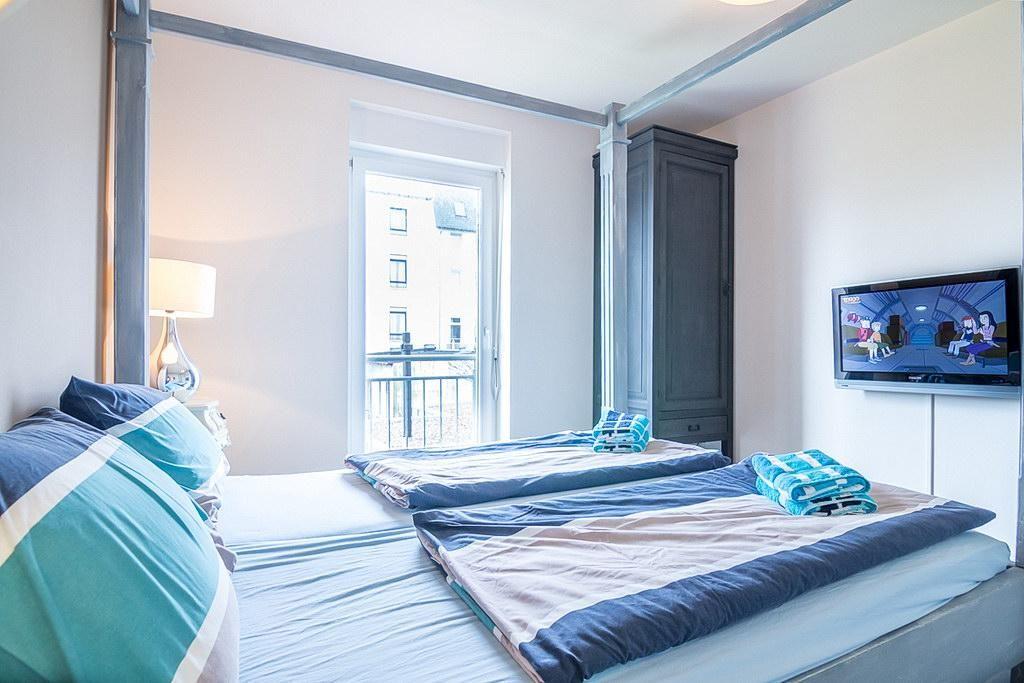 Beide Schlafzimmer verfügen über jeweils ein Doppelbett. Eines der Schlafzimmer verfügt zudem über ein eigenes TV-Gerät. Ein Kinderbett kann gegen Entgelt aufgestellt werden.
