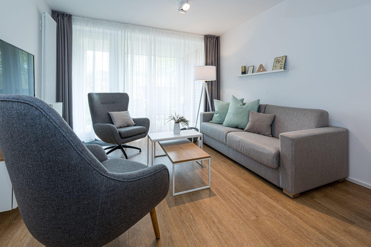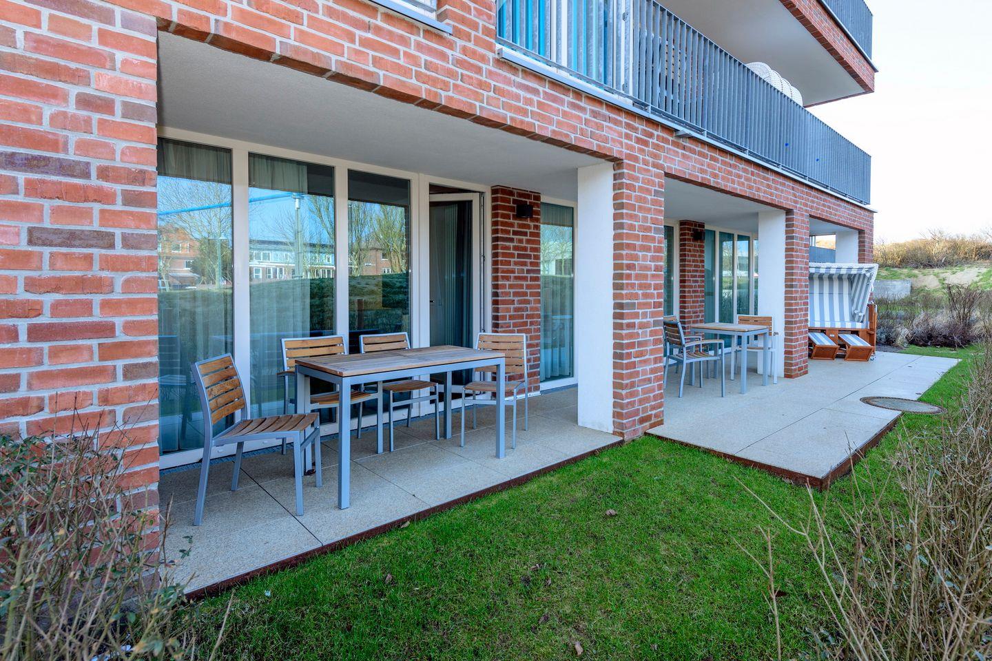 Hochwertiges Familien-Apartment mit großer Terrasse, Strandkorb und zwei Bäder