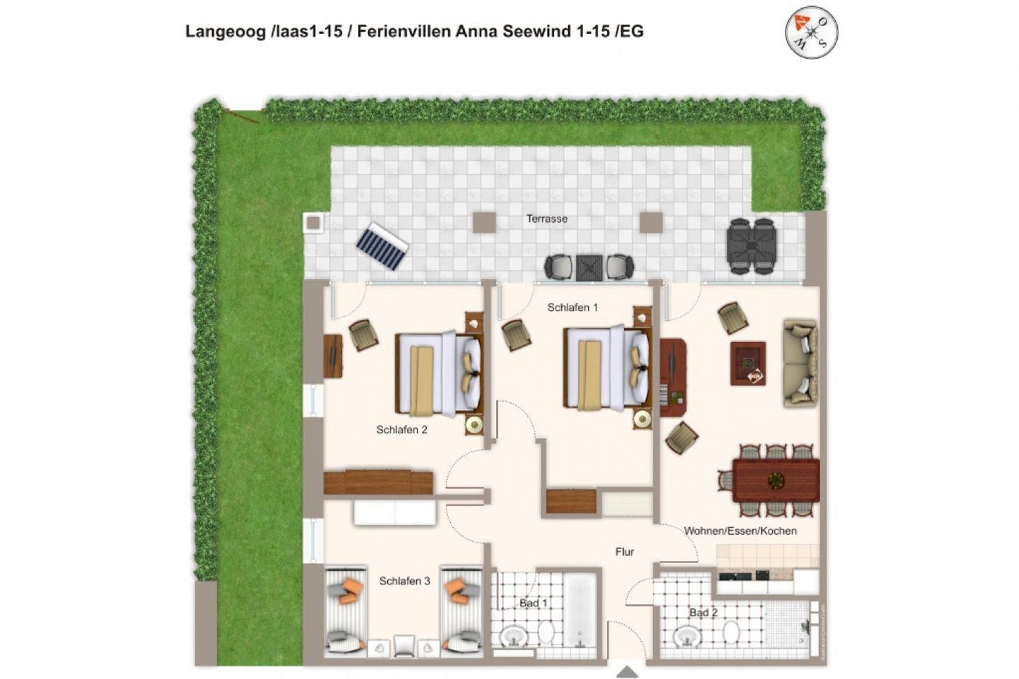 Die überaus großzügige, moderne und helle Ferienwohnung befindet sich in östlicher Lage im Erdgeschoss der Apartmentvilla Anna See, im Langeooger Ortszentrum, an der Barkhausenstraße gelegen. Der weitläufige Sandstrand und die Promenade sind nur 300 Meter entfernt. In der unmittelbaren Umgebung findet ihr zahlreiche Einkaufsmöglichkeiten, Restaurants und Cafés sowie Freizeitangebote wie z.B. das beliebte Meerwasser-Erlebnisbad, den Golfclub und die Kitesurfschule.