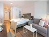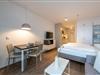 Das barrierearme Nichtraucher-Apartment verfügt über kostenfreies WLAN. Der Wohn- und Schlafraum bietet eine voll ausgestattete offene Küchenzeile mit Geschirrspüler, Gefrierfach, Kaffeemaschine, Toaster, Wasserkocher und Mikrowelle mit Grillfunktion sowie ein Doppelbett, eine Schlafcouch, einen großen Flatscreen-TV und Radio. Das Apartment verfügt über einen kleinen Esstisch und einen behaglichen Sitzbereich. Ein Kinderbett kann gegen Entgelt aufgestellt werden. Im stilvollen Badezimmer befinden sich eine große begehbare Dusche sowie ein Waschtisch mit Föhn und Kosmetikspiegel. Nach einem erholsamen Urlaubstag lässt es sich auf dem mit Gartenmöbeln ausgestatteten Balkon herrlich entspannen.