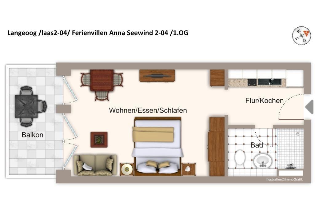 Das 30 m² große 1-Zimmer Apartment ist für bis zu 3 Personen geeignet. Besonders hervorzuheben ist der Balkon in sonnenreicher West-Lage. Hier könnt ihr sonnige und erholsame Urlaubstage und laue Sommerabende verleben.