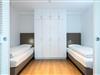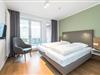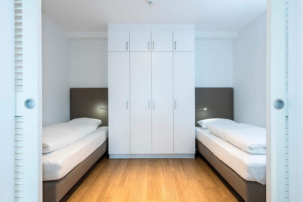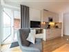 Das barrierearme Nichtraucher-Apartment verfügt über kostenfreies WLAN. Der Wohnbereich bietet eine voll ausgestattete offene Küchenzeile mit Geschirrspüler, Gefrierfach, Kaffeemaschine, Toaster, Wasserkocher und Mikrowelle mit Grillfunktion sowie einen großen Flatscreen-TV und Radio. Das Apartment verfügt über eine Schlafcouch, einen Esstisch und einen behaglichen Sitzbereich. Im separaten Schlafzimmer befindet sich ein Doppelbett und ein zweiter Flatscreen-TV, in einem weiteren Schlafbereich mit Schiebetür stehen euch zwei Einzelbetten zur Verfügung. Ein Kinderbett kann gegen Entgelt aufgestellt werden. Im stilvollen Badezimmer befinden sich eine große begehbare Dusche, eine Badewanne sowie ein Waschtisch mit Föhn und Kosmetikspiegel. Nach einem erholsamen Urlaubstag lässt es sich auf dem sonnigen und geschützten Balkon herrlich entspannen.
