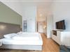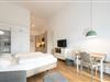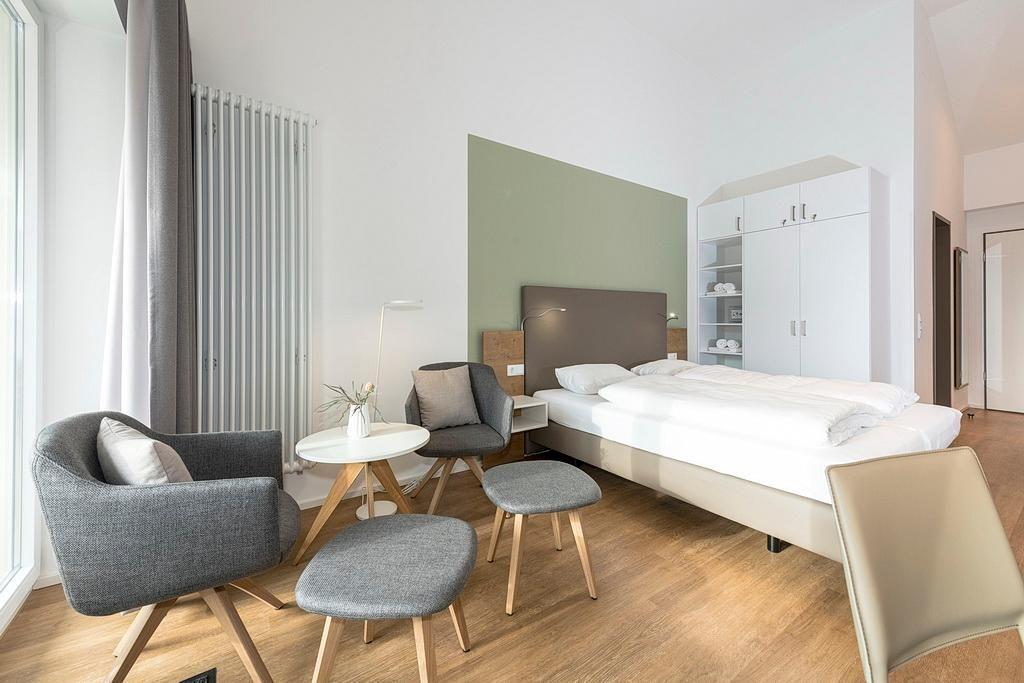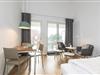 Das barrierearme Nichtraucher-Apartment verfügt über kostenfreies WLAN. Der Wohn- und Schlafraum bietet eine voll ausgestattete offene Küchenzeile mit Geschirrspüler, Gefrierfach, Kaffeemaschine, Toaster, Wasserkocher und Mikrowelle mit Grillfunktion sowie ein Doppelbett, einen großen Flatscreen-TV und Radio. Das Apartment verfügt über einen kleinen Esstisch und einen behaglichen Sitzbereich. Ein Kinderbett kann gegen Entgelt aufgestellt werden. Im stilvollen Badezimmer befinden sich eine große begehbare Dusche sowie ein Waschtisch mit Föhn und Kosmetikspiegel. Nach einem erholsamen Urlaubstag lässt es sich auf dem mit Gartenmöbeln ausgestatteten Balkon herrlich entspannen.