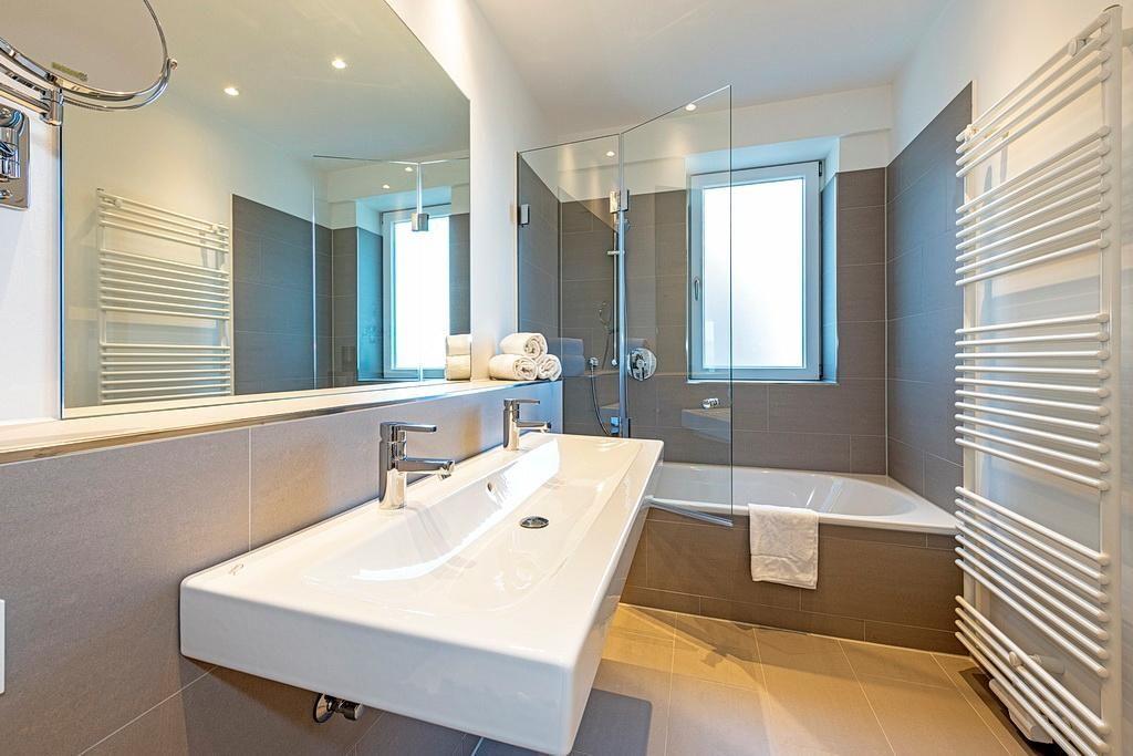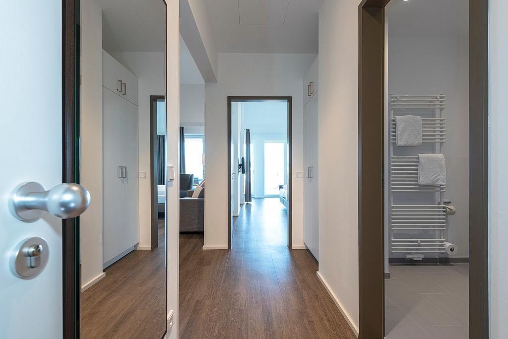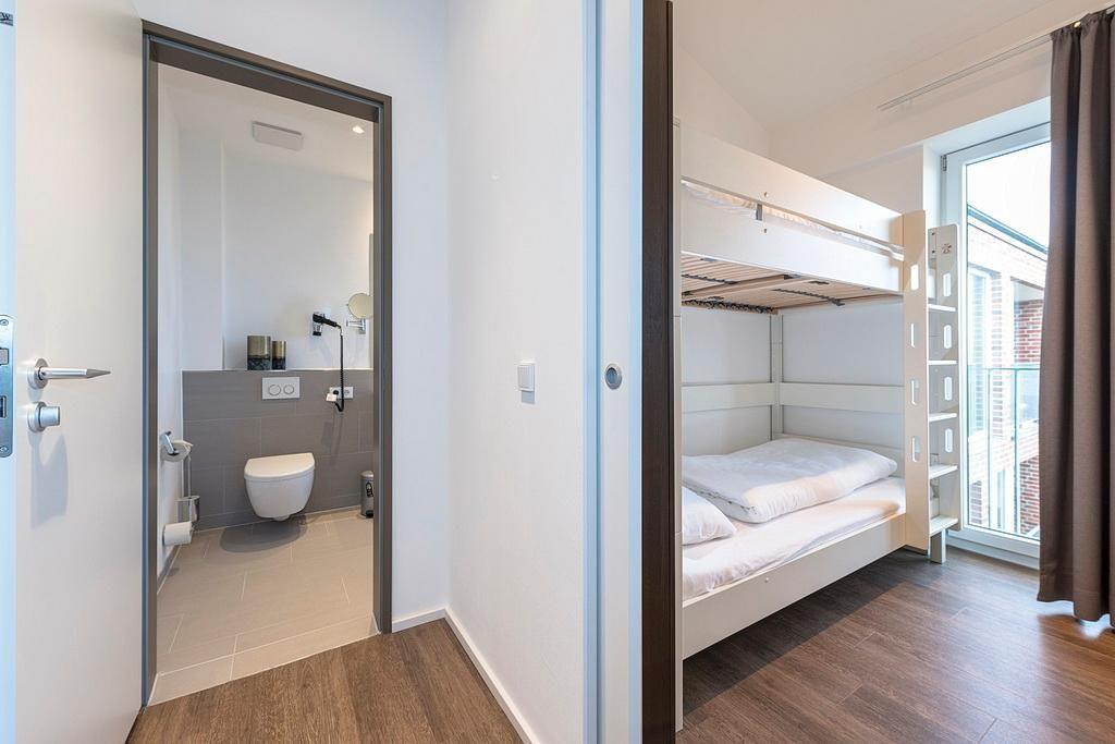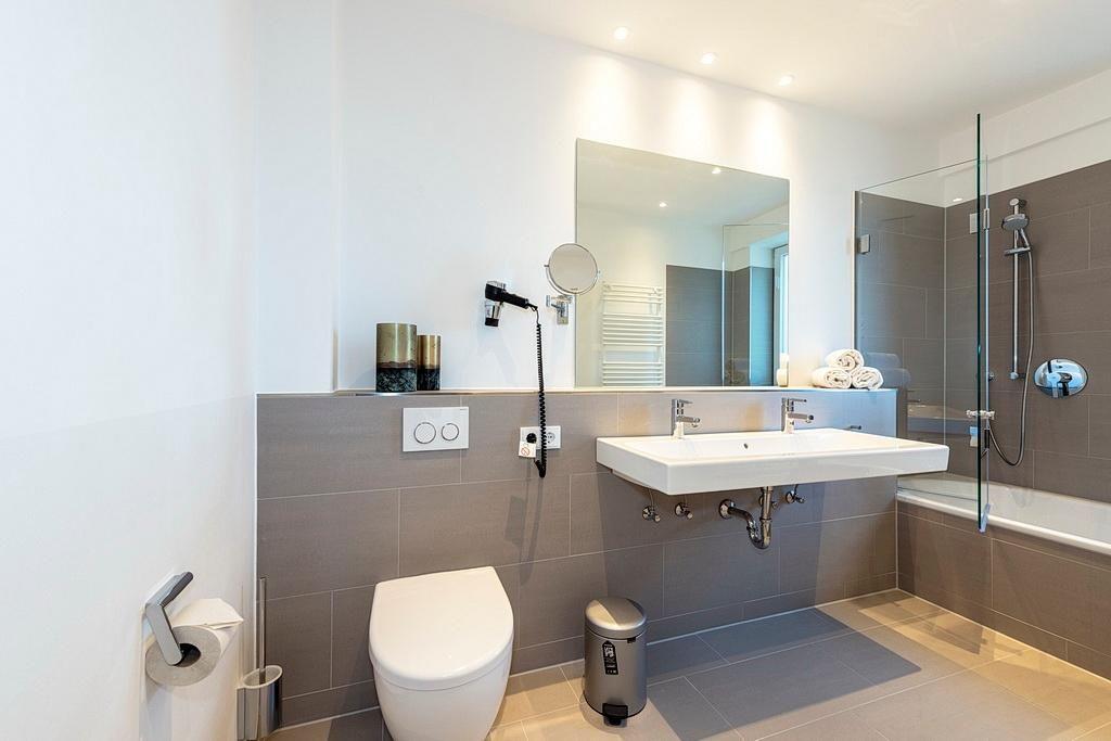 Das hochwertige Nichtraucher-Apartment verfügt über kostenfreies WLAN. Der Wohnbereich mit einer Schlafcouch bietet eine voll ausgestattete offene Küche mit Geschirrspüler, Gefrierfach, Kaffeemaschine, Toaster, Wasserkocher und Mikrowelle mit Grillfunktion sowie einen großen Flatscreen-TV und Radio. Das Apartment verfügt über einen Esstisch für 7 Personen und einen behaglichen Sitzbereich. Drei separate Schlafzimmer stehen euch zur Verfügung. Zwei davon jeweils mit einem Doppelbett und eins mit einem eigenem Flatscreen-TV. Zudem verfügt eines dieser Schlafzimmer über einen direkten Zugang zum Balkon. Das dritte Schlafzimmer mit Etagenbett liegt unmittelbar neben einem der Badezimmer. Ein Kinderbett kann gegen Entgelt aufgestellt werden. In beiden stilvollen Badezimmern befinden sich eine große begehbare Dusche bzw. eine Badewanne sowie ein Waschtisch mit Föhn und Kosmetikspiegel. Auf dem geschützten Balkon könnt ihr in großer Runde gemütlich beisammensitzen.