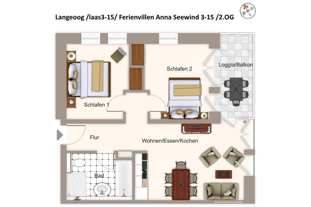 Die moderne und helle Ferienwohnung befindet sich in Süd-Ost-Lage und im zweiten Obergeschoss der Apartmentvilla Anna See, im Langeooger Ortszentrum, an der Barkhausenstraße gelegen. Der weitläufige Sandstrand und die Promenade sind nur 300 Meter entfernt. In der unmittelbaren Umgebung findet ihr zahlreiche Einkaufsmöglichkeiten, Restaurants und Cafés. Freizeitangebote wie z.B. das beliebte Meerwasser-Erlebnisbad, der Golfclub oder die Kitesurfschule sind fußläufig bequem zu erreichen.