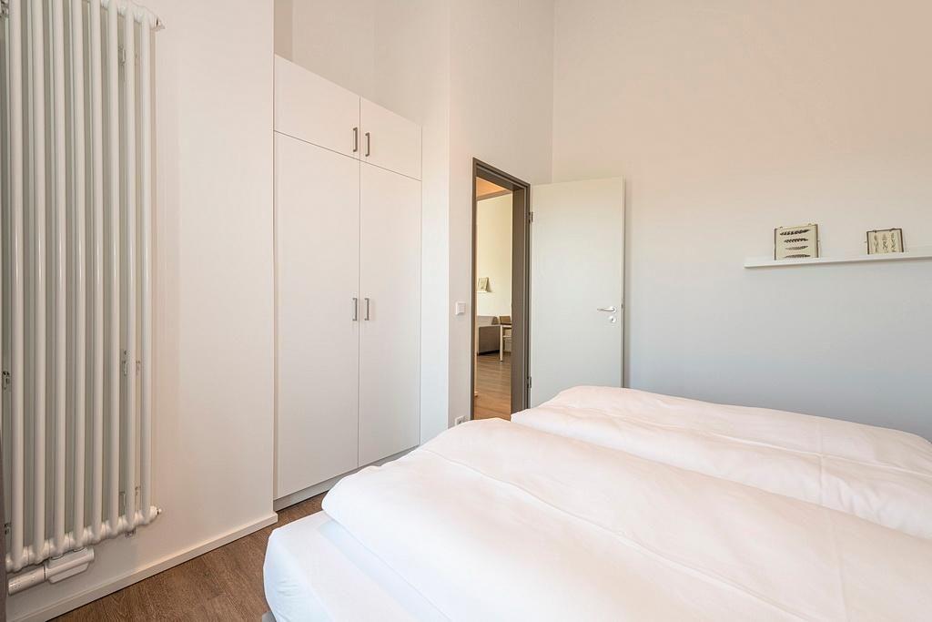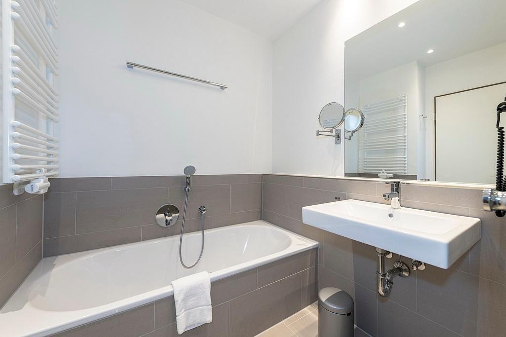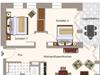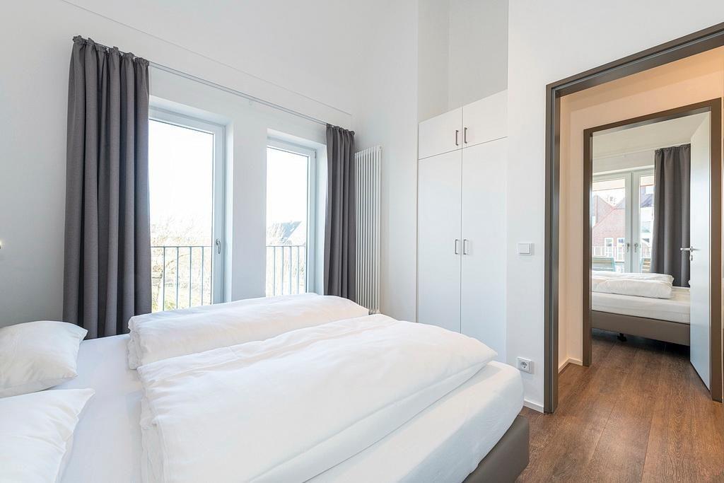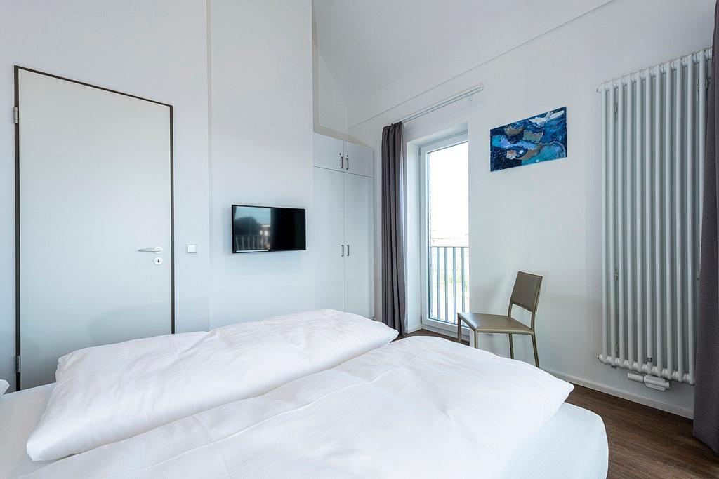 Das barrierearme Nichtraucher-Apartment verfügt über kostenfreies WLAN. Der Wohnbereich bietet eine voll ausgestattete offene Küchenzeile mit Geschirrspüler, Gefrierfach, Kaffeemaschine, Toaster, Wasserkocher und Mikrowelle mit Grillfunktion sowie einen großen Flatscreen-TV und Radio. Das Apartment verfügt über, eine Couch mit Schlaffunktion, einen Esstisch und einen behaglichen Sitzbereich. In den beiden separaten Schlafzimmern befindet sich jeweils ein Doppelbett. Eines der Schlafzimmer verfügt zudem über einen zweiten Flatscreen-TV. Ein Kinderbett kann gegen Entgelt aufgestellt werden. Im stilvollen Badezimmer befinden sich eine große begehbare Dusche, eine Badewanne sowie ein Waschtisch mit Föhn und Kosmetikspiegel. Auf dem geschützten Balkon könnt ihr schon am Morgen den Sonnenschein genießen.