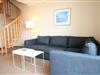 Die 53 m² große 3-Zimmer-Maisonette-Ferienwohnung über zwei Etagen ist für bis zu 6 Personen geeignet. Besonders hervorzuheben ist der schöne Ausblick zum Meer und zum Deich vom Balkon des Apartments. Den Strand erreicht ihr ganz bequem über einen direkten Zugang von der Ferienanlage.