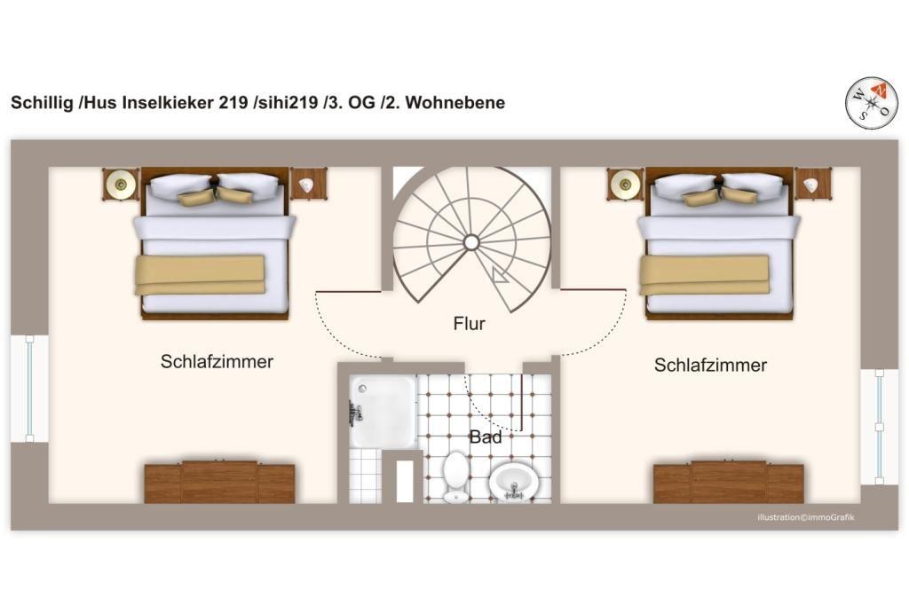 Die idyllisch gelegene Maisonette-Wohnung über zwei Etagen, verläuft über das zweite und dritte Geschoss des Hus Inselkieker und vermittelt euch das Gefühl, sich in einem eigenen kleinen Häuschen zu wohnen. Die Ferienanlage befindet sich in besonders ruhiger Lage, direkt am Deich und nur 200 Meter vom Sandstrand entfernt. In unmittelbarer Nähe findet ihr Einkaufsmöglichkeiten, Restaurants und Cafés. Beliebte Freizeitangebote für Familien wie z.B. das Thalasso Meeres SPA in Horumersiel, ein Abenteuerspielplatz, das Seewasser-Aquarium Wilhelmshaven u.v.m. befinden sich ebenfalls in der Umgebung und sind mit dem Auto gut zu erreichen. Das beliebte Rad- und Wanderwegnetz lädt zu ausgiebigen Entdeckungstouren entlang der Küste ein.