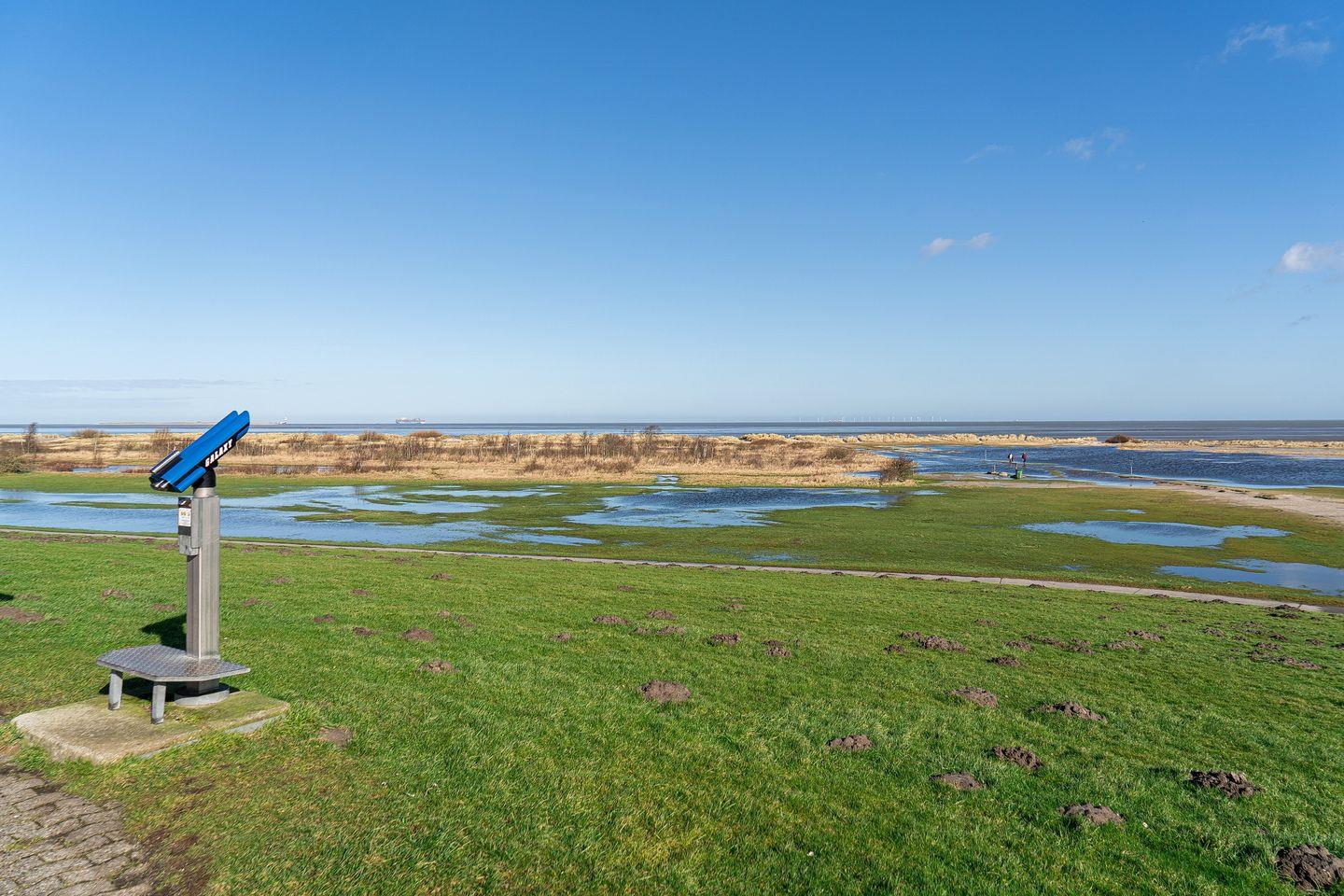Top-Ferienhaus am Deich mit Terrasse am Wasser, Balkon, Sauna, Kamin & Hot Tub