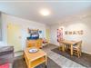 Der Wohn-Essbereich bietet euch einen Flatscreen-TV (32 Zoll), HiFi-Anlage, CD-Player, Gesellschaftsspiele und Bücher. Von hier aus habt ihr auch Zugang zum überdachten Balkon in Südwest-Lage mit seitlichem Meerblick!
