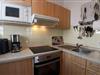 In der separaten, voll ausgestatteten Küche befinden sich Kühlschrank mit Gefrierfach, 4-Felder Ceranherd mit Backofen, Kaffeemaschine, Eierkocher, Toaster, Wasserkocher, Mikrowelle und Heißluftfritteuse.