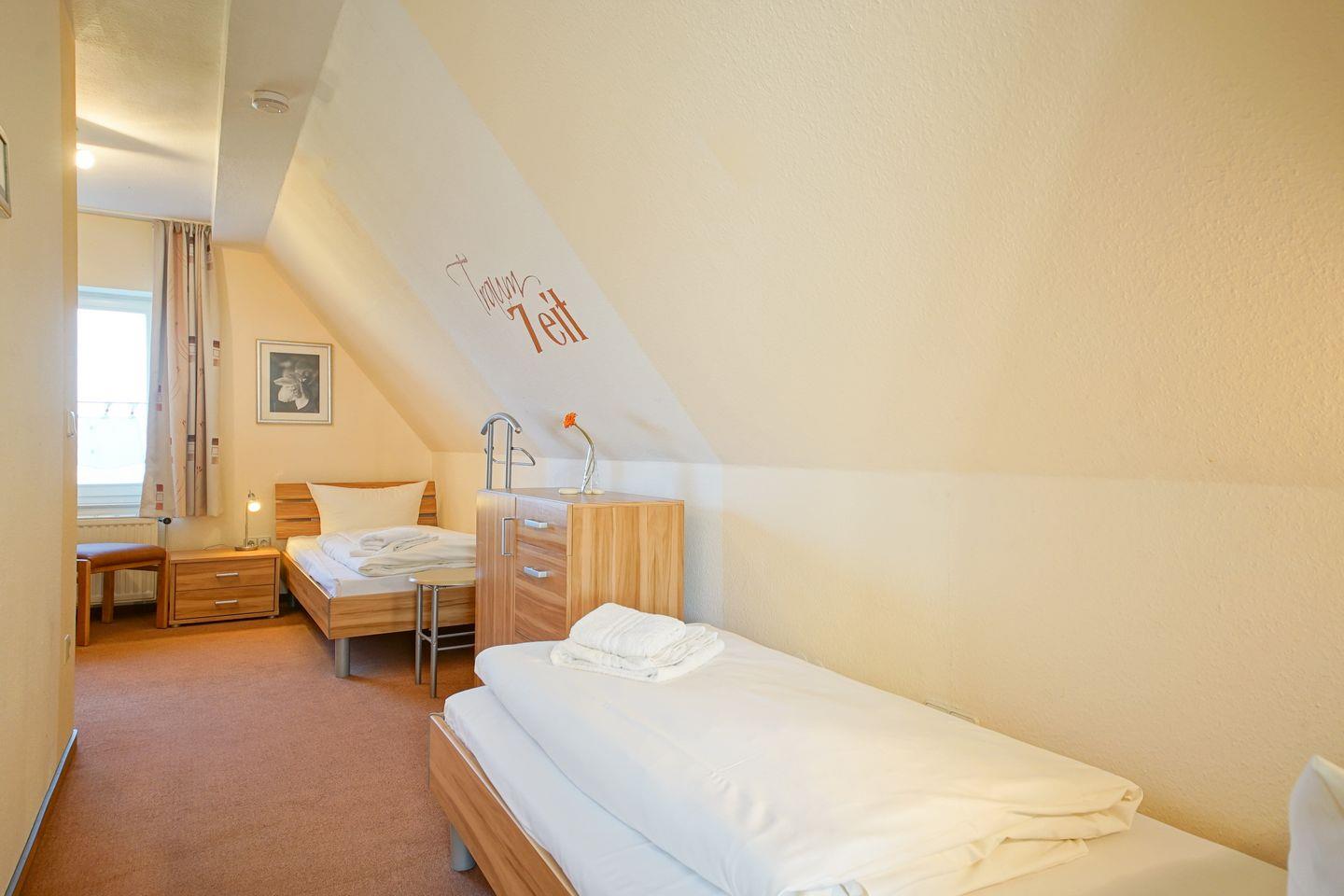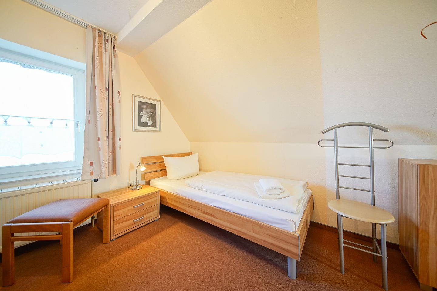 Beide Schlafzimmer verfügen über einen Insektenschutz vor den Fenstern. Das „Hus Strandkieker“ bietet euch die gemeinschaftliche Nutzung der Münzwaschmaschine inklusive Trockner, eine geschützte Abstellmöglichkeit für Fahrräder in einem Abstellraum sowie einen PKW-Stellplatz, der euch kostenfrei zur Verfügung steht. In der Maisonette-Wohnung sind Haustiere nicht erlaubt.