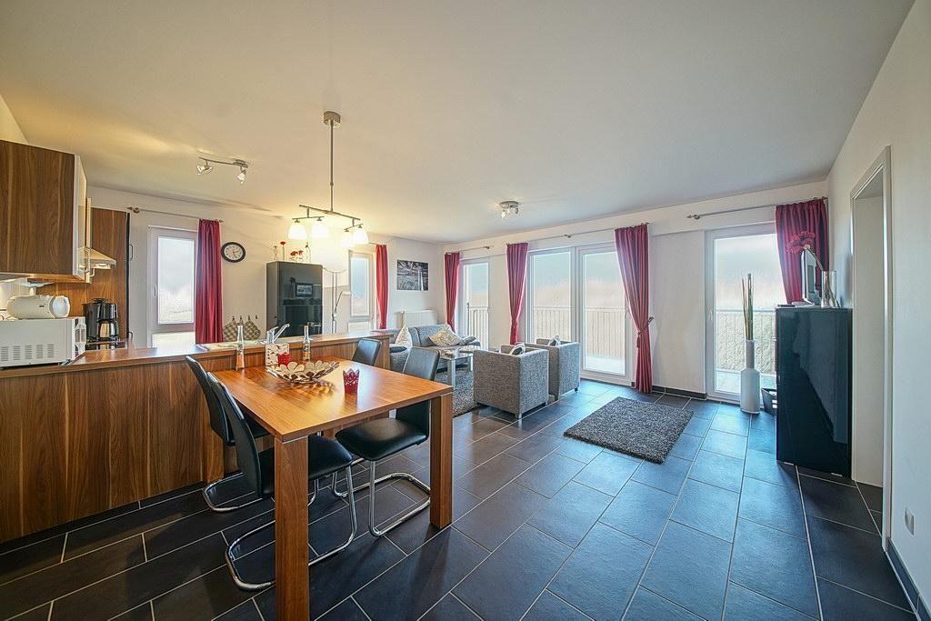 Die Ferienwohnung besteht aus 2 Schlafzimmern mit Doppelbetten, dem geschmackvoll eingerichteten Wohnbereich, einem hochwertigen Bad mit Dusche, Whirlbadewanne, Sauna und Fußbodenheizung und aus einem Balkon mit Blick in die Deich-Idylle der Nordsee.