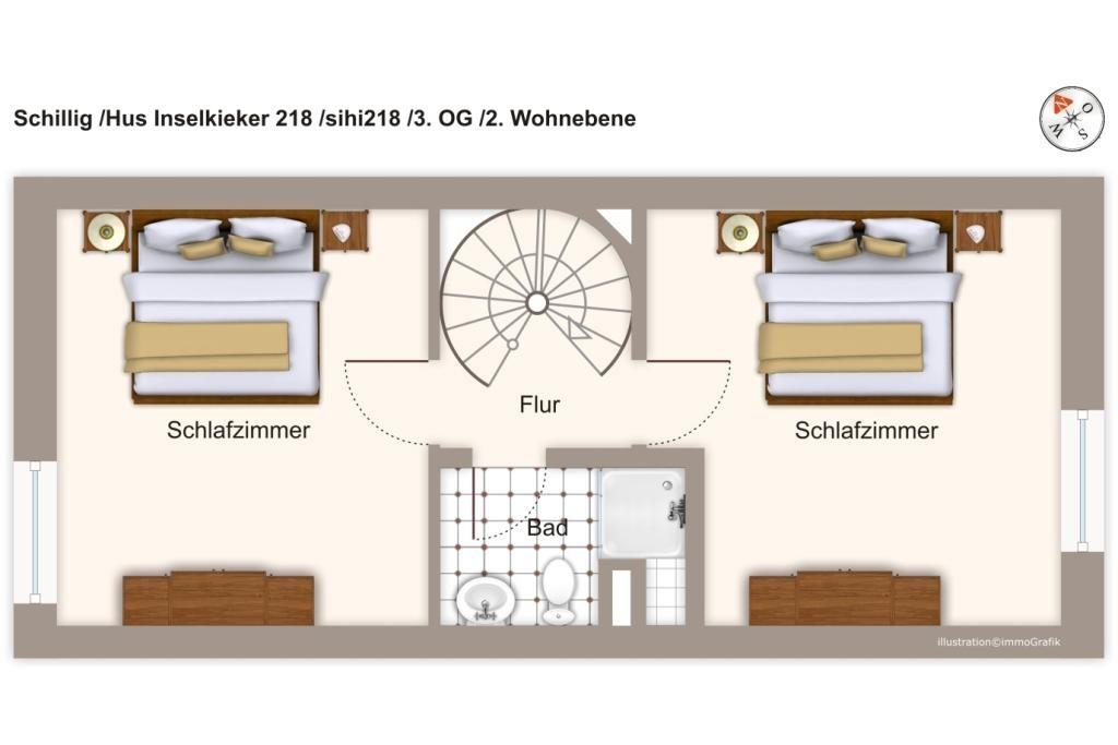 In Schillig bieten sich euch im „Hus Inselkieker“ Ferienapartments im Nordsee-Ambiente und mit direktem Zugang zum Strand. Die Maisonette-Wohnung auf 2 Ebenen eignet sich mit 53 qm und einem kleinen Balkon mit Blick ins Grüne für bis zu 4 Personen.