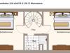 Im 2. Obergeschoss befinden sich eine separate Küche, Wohnbereich mit Doppelschlafcouch und ein kleiner Balkon; Schlafzimmer mit Doppelbett, Kinderzimmer mit 2 Einzelbetten und Badezimmer mit Dusche sind auf der 3. Etage.