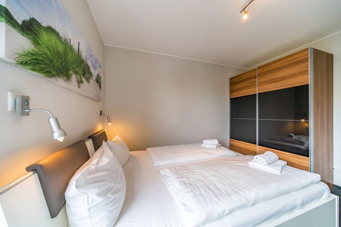 Das 79 qm große 3-Zimmer-Ferienapartment ist für 4 Personen geeignet. Besonders hervorzuheben ist der schöne Balkon, direkt am Wasserlauf gelegen und mit Blick bis zur Nordsee und zum Deich. Das Apartment verfügt über eine eigene Sauna und Badewanne.