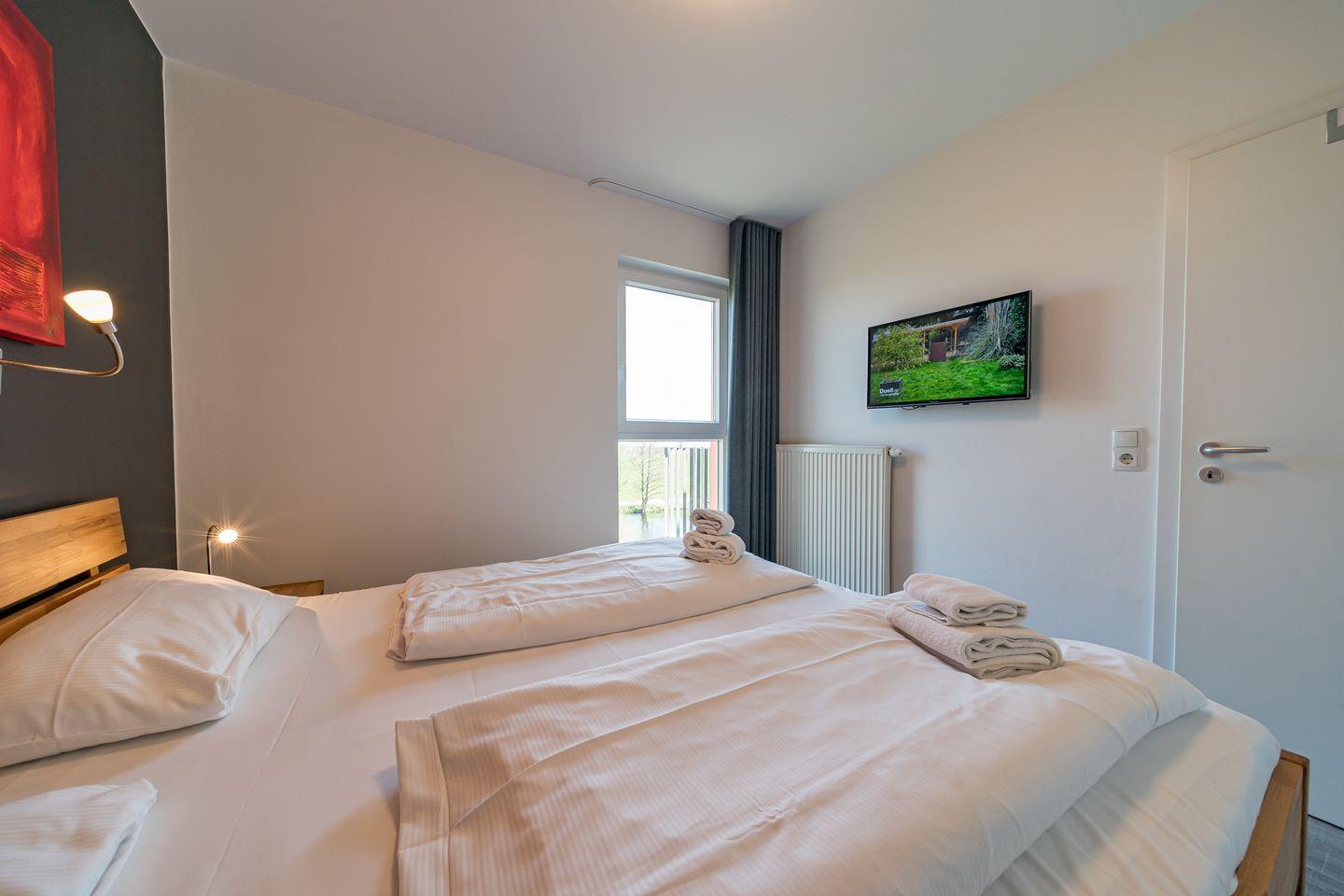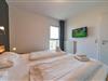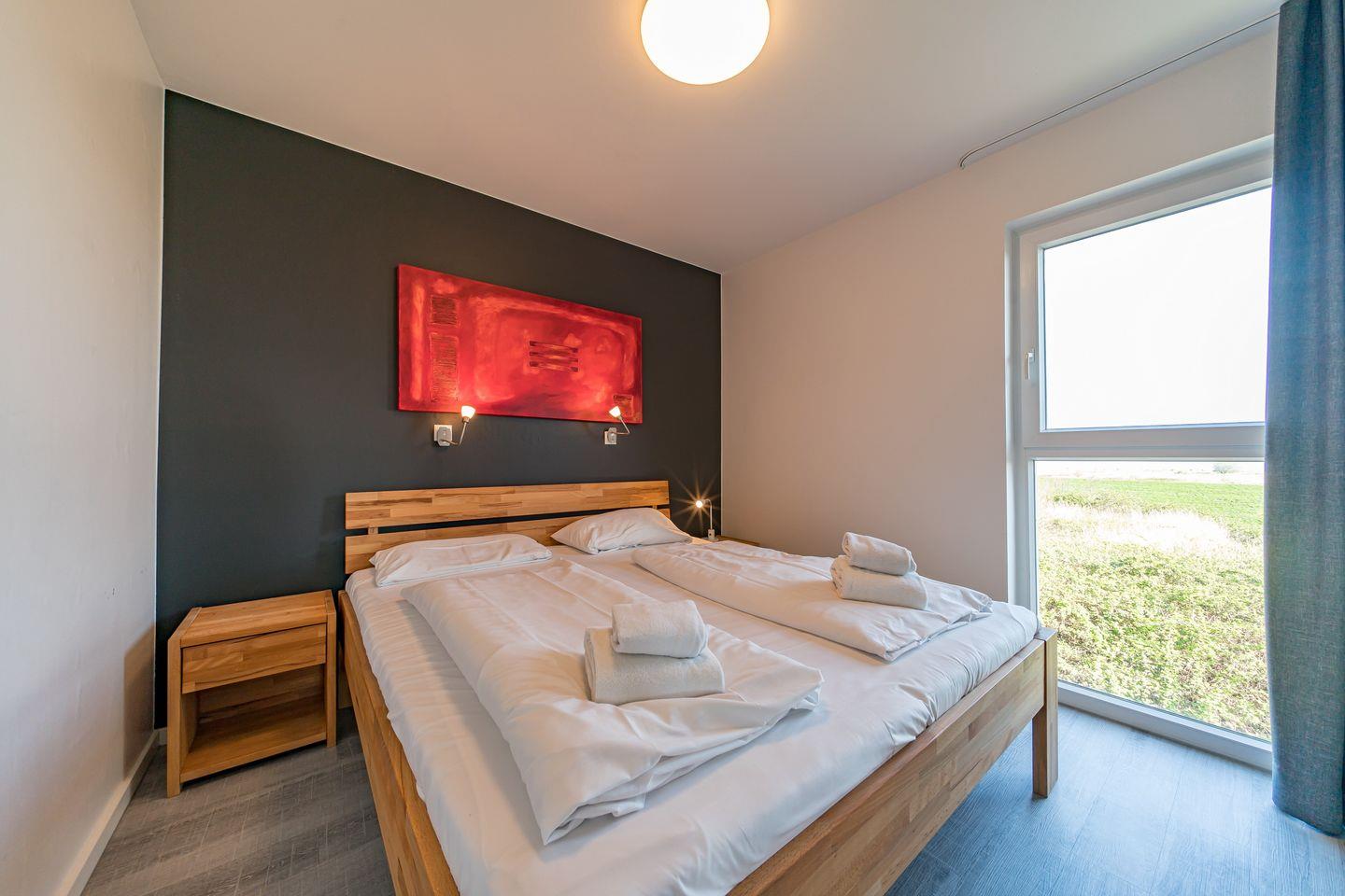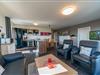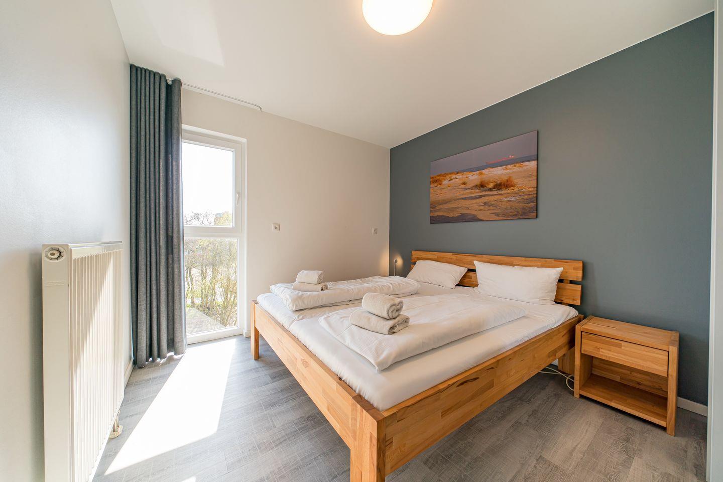 Zum Apartment gehören zwei Schlafzimmer mit jeweils einem Doppelbett, ein Wohnbereich mit SMART-TV (50 Zoll), ein hochwertiges Bad mit Dusche, Whirlbadewanne, Sauna und Fußbodenheizung und ein Balkon mit tollem Nordsee-Blick und Strandkorb. In einem der Schlafzimmer befindet sich ein weiterer SMART-TV (32 Zoll).