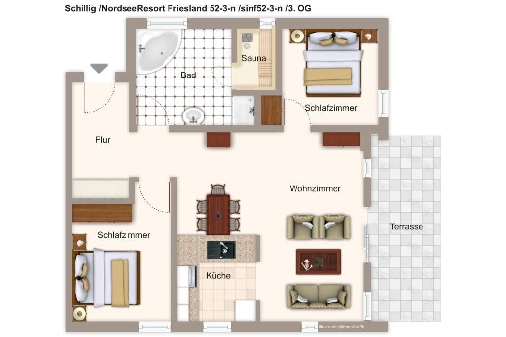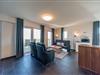 Im „NordseeResort Friesland“ findet ihr hochwertig ausgestattete Apartments: Die stilvolle Ferienwohnung eignet sich mit 3 Zimmern, 80 qm und Balkon mit Ideal-Blick auf die Nordsee für 4 Personen. Die private Sauna und die Whirlbadewanne im Apartment runden das Wohlfühl-Ambiente ab.
