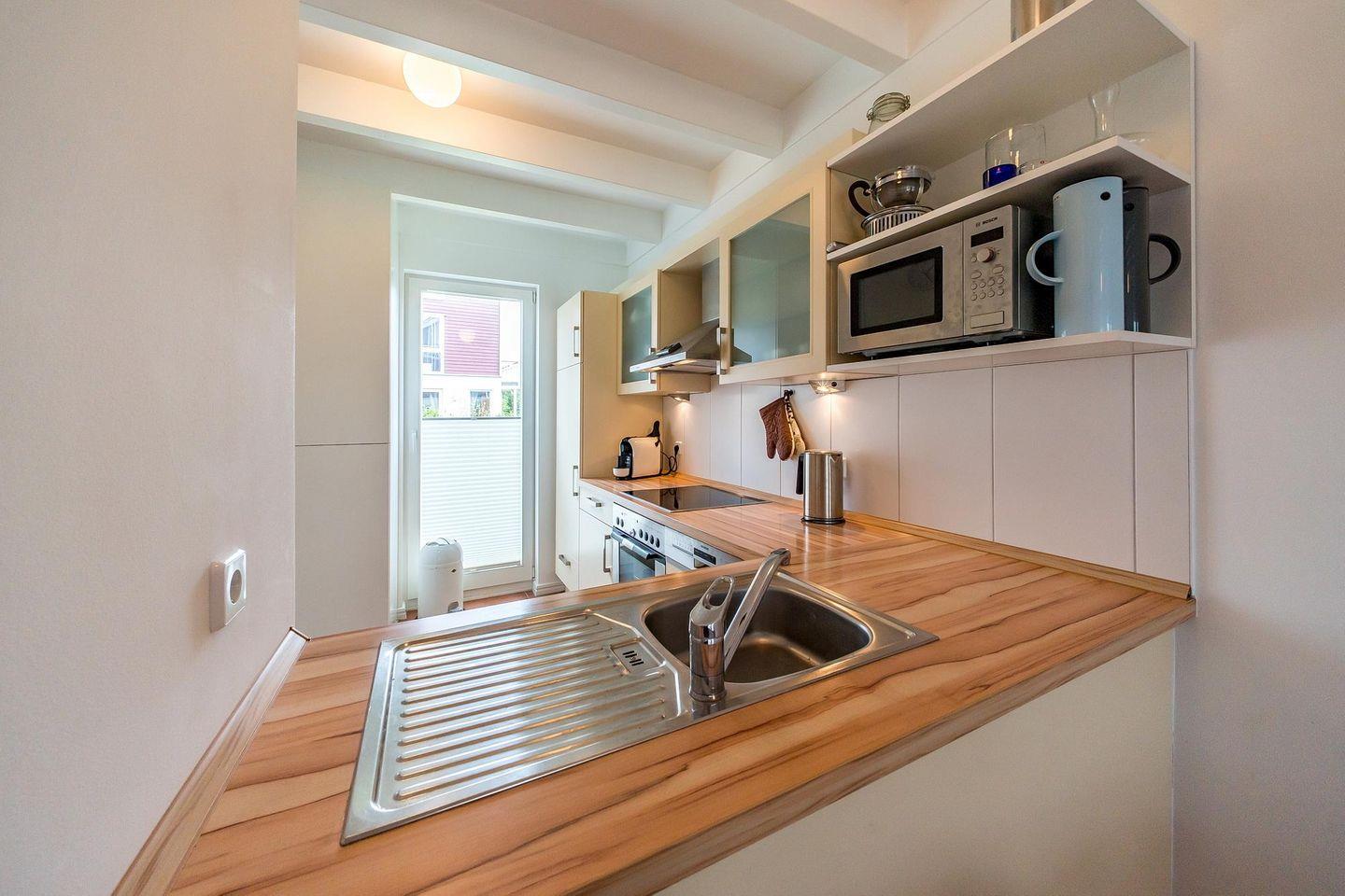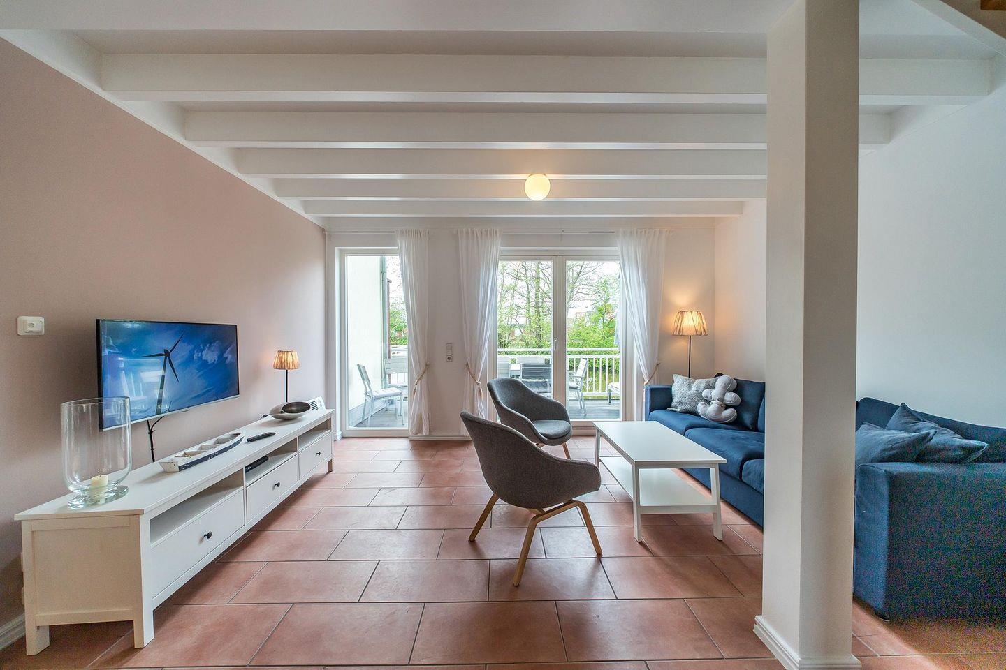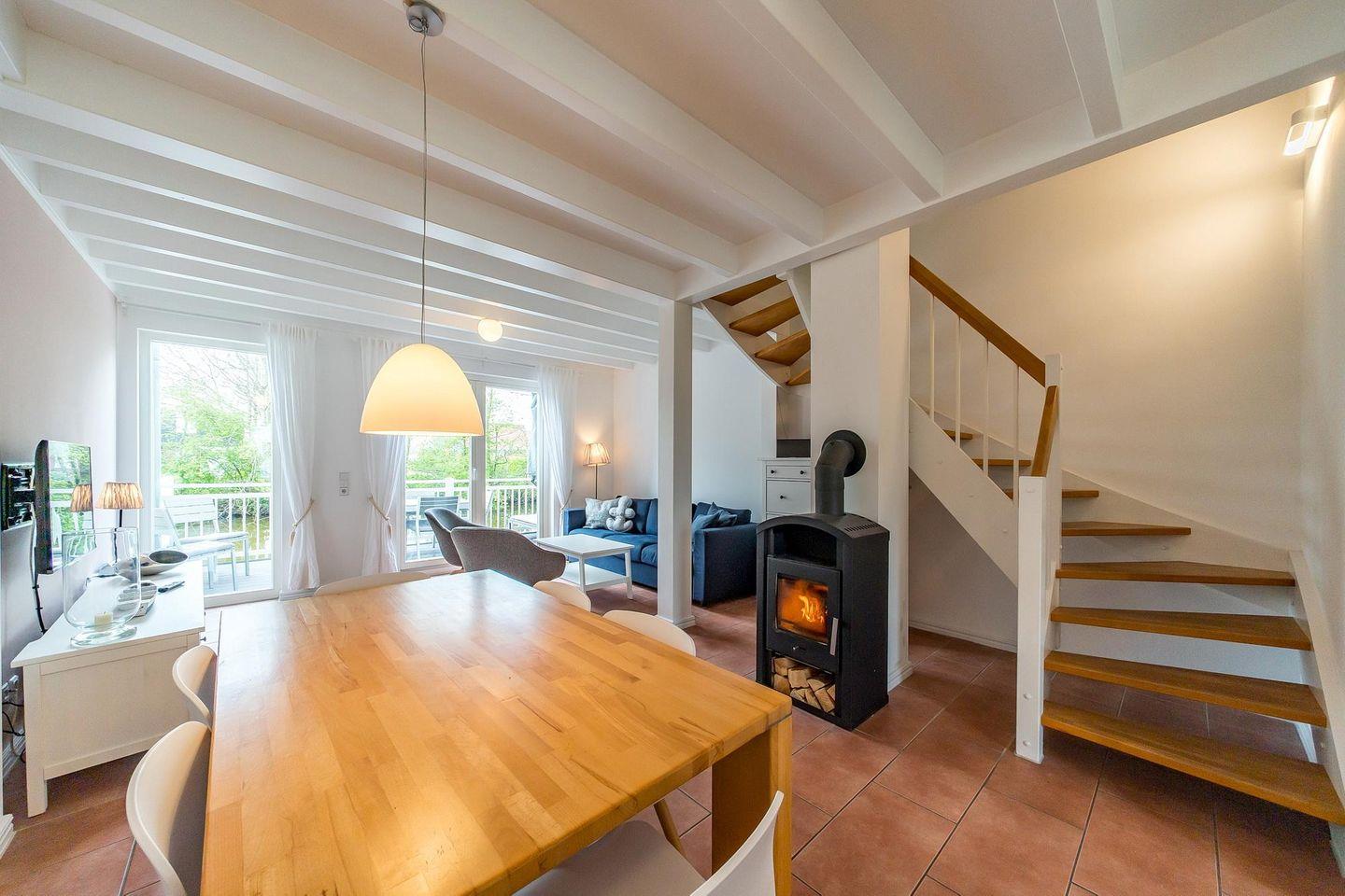 Das lichtdurchflutete Nichtraucherhaus verfügt über Fußbodenheizung, bodentiefe Fenster und kostenfreies WLAN. Auf der ersten Wohnebene befindet sich die moderne und voll ausgestattete offene Küche mit Geschirrspülmaschine, Mikrowelle, Backofen, Toaster, Kaffeekapselmaschine (Cafissimo), Wasserkocher, Kühlschrank mit Tiefkühlfach sowie 4-Felder Ceranherd. Auf dieser Ebene liegt auch der behaglich-skandinavisch eingerichtete Wohn-Essbereich mit Kaminofen (Kaminholz ist nicht inbegriffen), SMART-TV und DVD-Player. Sowohl der Esstisch, als auch der Sitzbereich bieten viel Platz um gesellige Stunden mit der Familie oder Freunden nach einem schönen Tag am Strand zu verbringen. Von hier aus habt ihr Zugang zur wunderschön am Wasser gelegenen Terrasse - mitten im idyllischen Grün. Ein Sonnenschirm, Gartenmöbel und Sonnenliege stehen für euch bereit. Auf der ersten Etage befindet sich ein separates WC. Während der Saison steht euch exklusiv ein Strandkorb am Strand zur kostenfreien Nutzung zur Verfügung!
