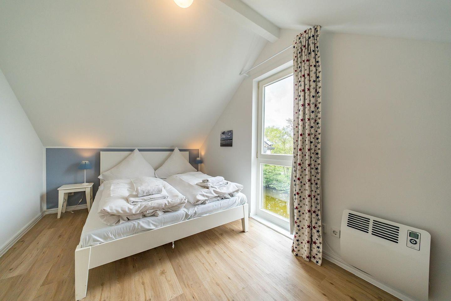 Das exklusive 102 qm große 5-Zimmer-Ferienhaus ist für bis zu 6 Personen geeignet. Einmalig schön sind der überdachte Balkon mit Blick bis zum Deich sowie die idyllisch gelegene Terrasse direkt am Wasserlauf. Das Apartment verfügt über Sauna, Badewanne und Kaminofen!
