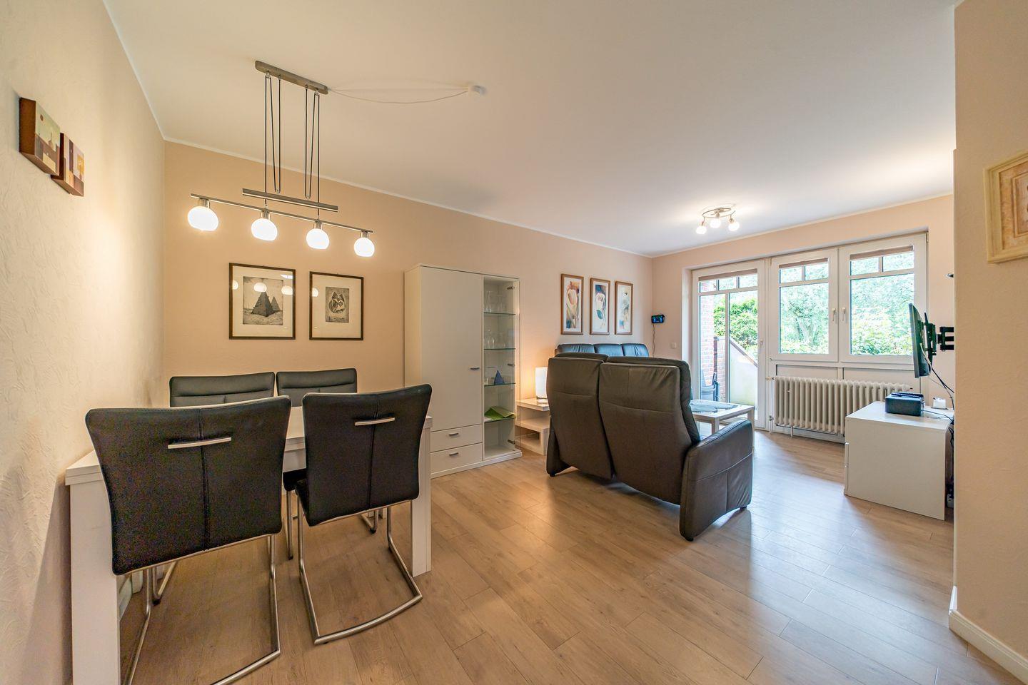 Das 59 qm große 3-Zimmer Apartment der Ferienanlage "Haus Boje" in Schillig begrüß bis zu 4 Personen. Die gemütliche Ferienwohnung mit Balkonterrasse und Blick ins Grüne versprüht charmantes Nordsee-Flair.