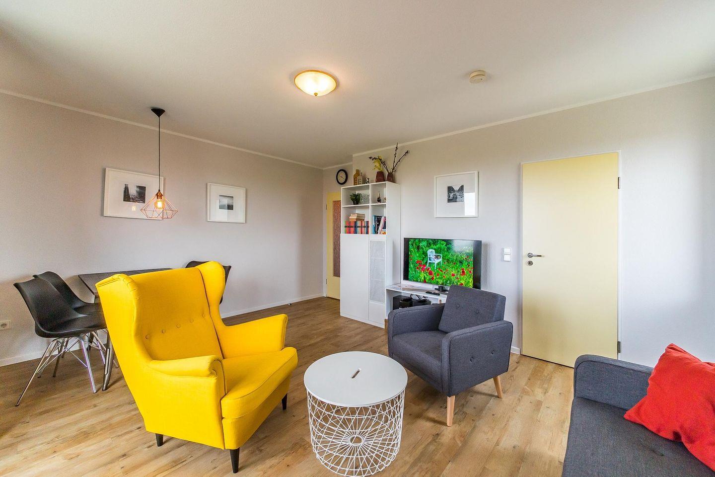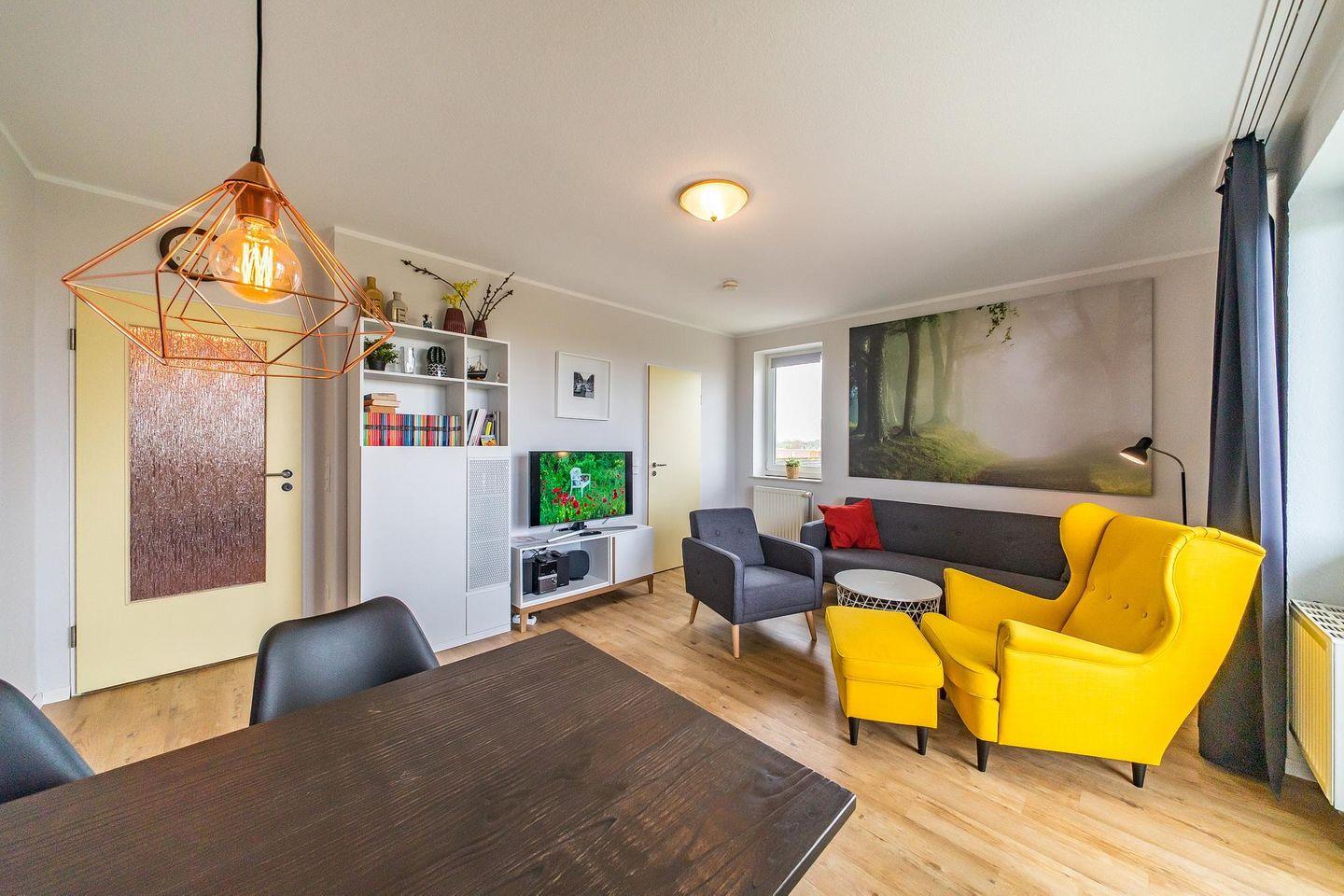 Im Turm der Ferienanlage gelegen, befindet sich das Apartment im 4. Obergeschoss. In eurer unmittelbaren Umgebung laden kleine Geschäfte, gemütliche Cafés und Restaurants zum Bummeln und Verweilen ein. Auch das 2.500 m² große Thalasso Meeres Spa in Horumersiel ist schnell erreicht – ideal für eine entspannte Auszeit am Meer.