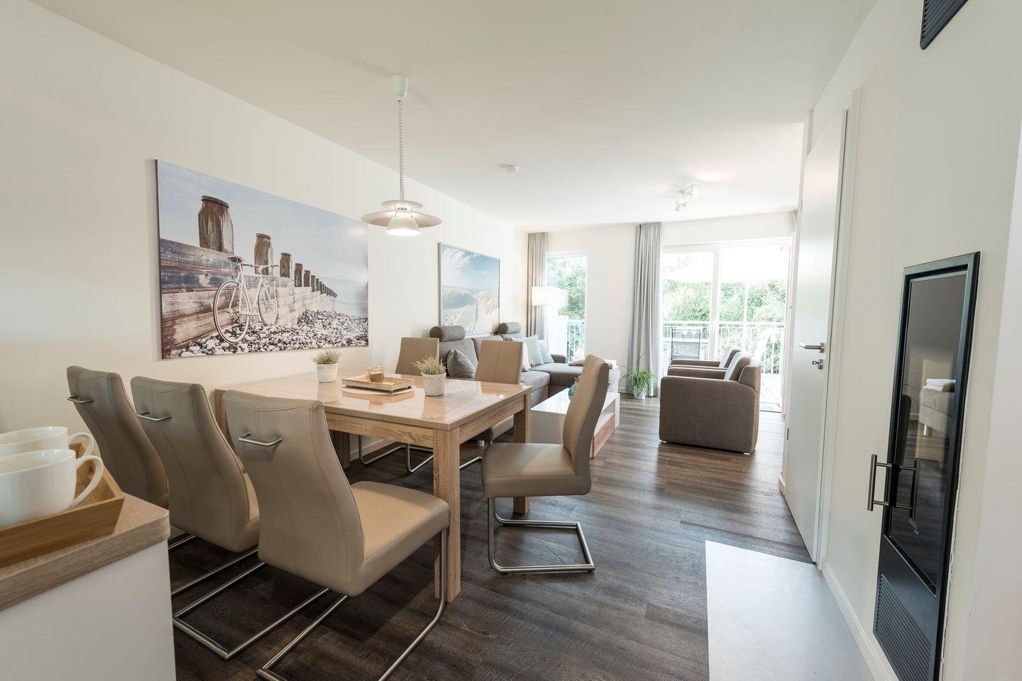 Das 107 qm große und komfortable 5-Zimmer-Ferienhaus ist für 6 Personen geeignet. Besonders hervorzuheben sind die wunderschöne Terrasse in Südlage direkt am Wasserlauf sowie der überdachte Balkon in nördlicher Lage zum Meer und zum Deich gelegen. Das geschmackvolle Apartment verfügt überdies über eine eigene Sauna und einen Kamin.