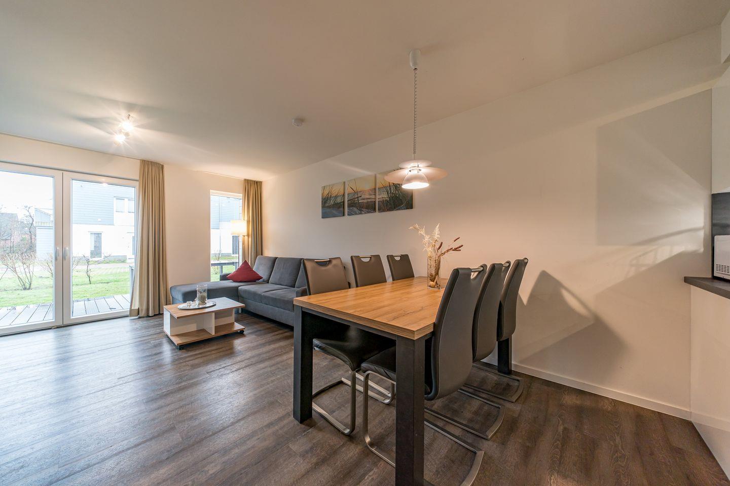 Das geschmackvolle und helle Nichtraucher-Ferienhaus verfügt über Fußbodenheizung, kostenfreies WLAN, bodentiefe Fenster und bietet eine moderne und voll ausgestattete offene Küche mit Geschirrspülmaschine, Backofen, Toaster, Kaffeemaschine, Wasserkocher, Kühlschrank mit Tiefkühlfach sowie 4-Felder Ceranherd. Im kombinierten Wohn-Essbereich stehen euch ein großer Flatscreen-TV und ein Kaminofen zur Verfügung (Kaminholz ist nicht inbegriffen). Sowohl der Esstisch, als auch der behagliche Sitzbereich bieten euch viel Platz, um gesellige Stunden mit der Familie oder Freunden nach einem schönen Tag am Strand zu verbringen. Das Apartment verfügt über drei separate Schlafzimmer mit jeweils einem Doppelbett bzw. eines mit zwei Einzelbetten. Ein Kinderbett und einen Hochstuhl könnt ihr auf Wunsch entgeltlich dazu buchen.