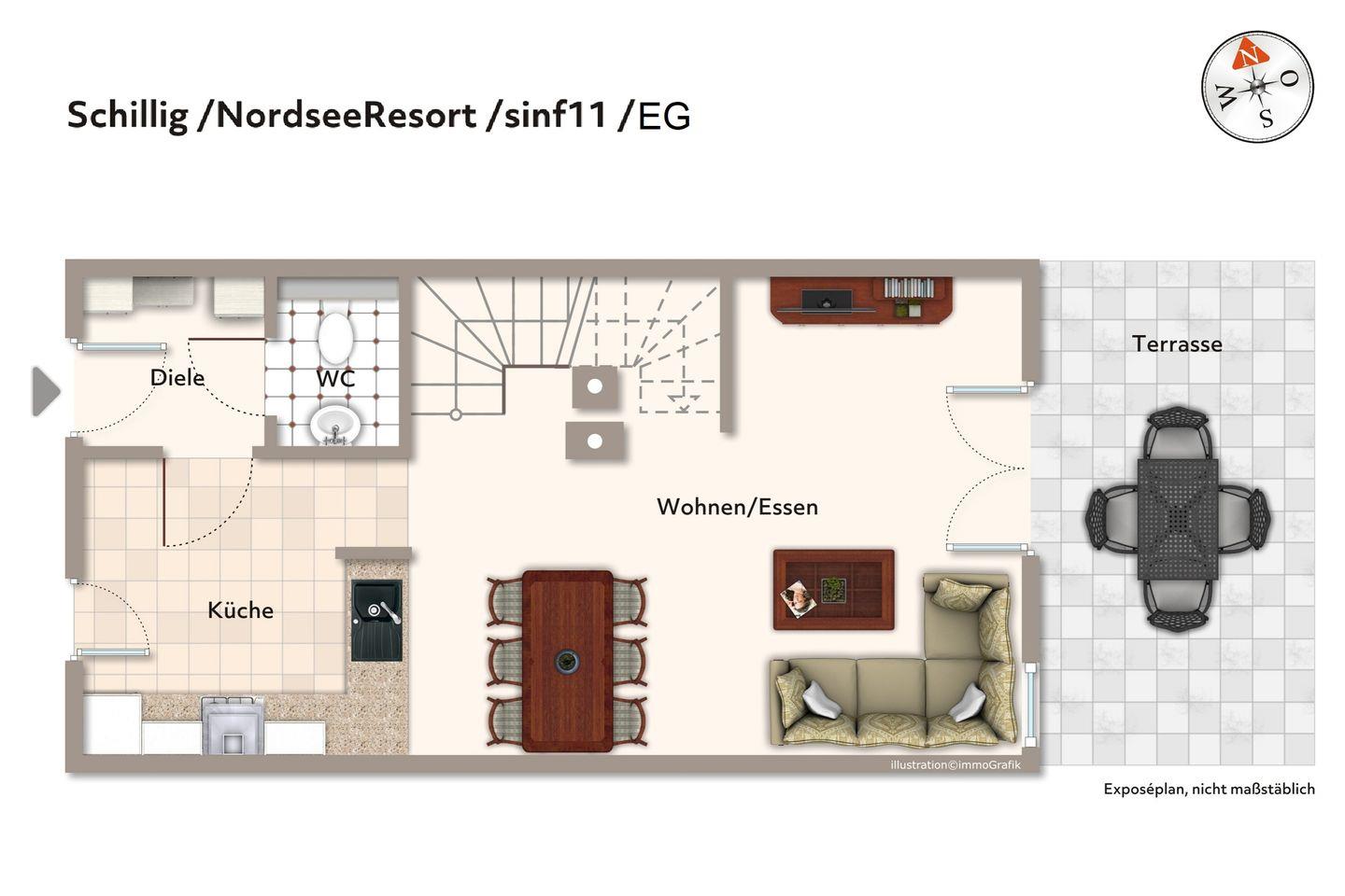 Bereits beim Frühstück könnt ihr auf der großzügigen und südlich gelegenen Terrasse die idyllische Lage und den Blick auf das Wasser genießen. Die Terrasse verfügt über Lounge-Möbel und ist vom Wohnbereich aus begehbar.