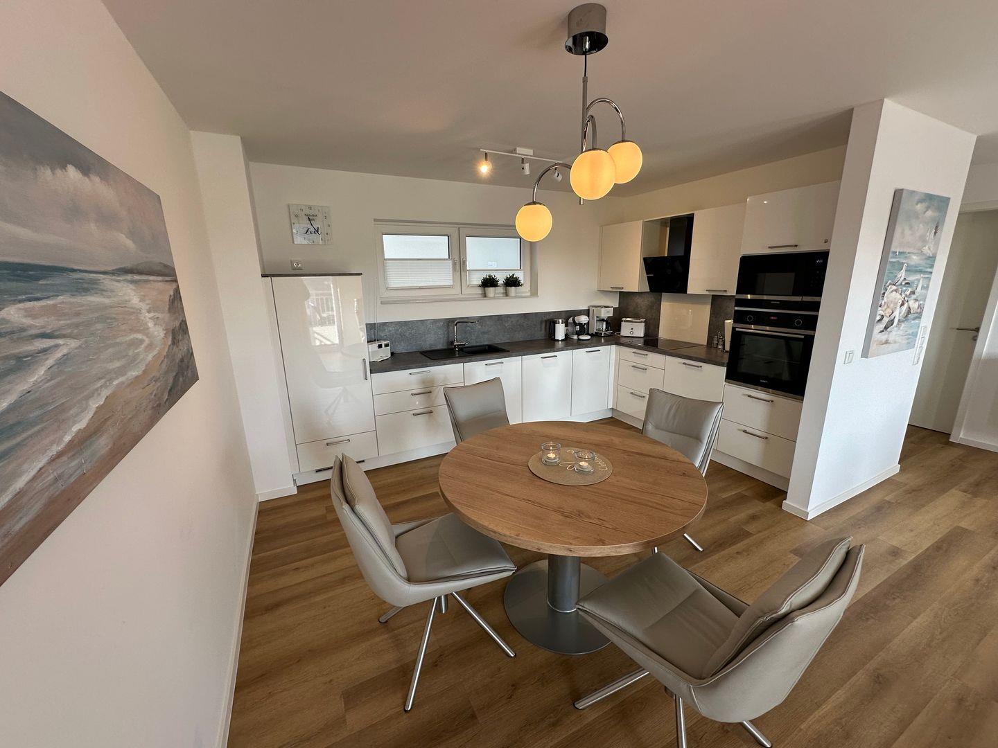 Das geschmackvolle Nichtraucher-Apartment verfügt über kostenfreies WLAN und bietet eine moderne und voll ausgestattete offene Küche mit Geschirrspülmaschine, Mikrowelle, 4-Felder-Induktionsherd mit Backofen, Toaster, Kaffeemaschine, Kaffeekapselmaschine (Tassimo), Wasserkocher, Eierkocher und Kühlschrank mit Tiefkühlfach.