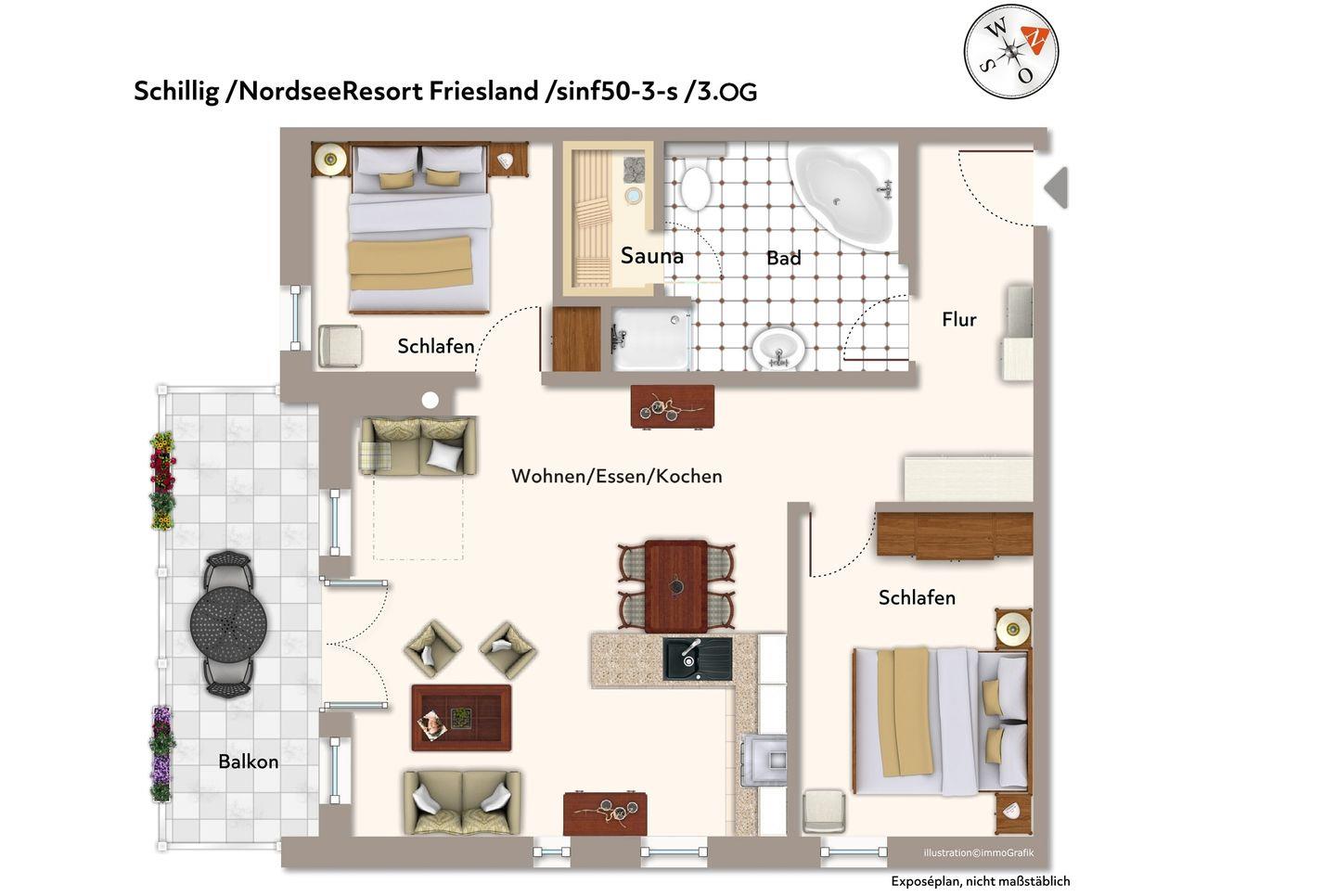 Das 81 m² große 3-Zimmer-Apartment ist für bis zu 6 Personen mit Familienhund geeignet. Besonders hervorzuheben sind die private Sauna und die sonnige Lage Das lichtdurchflutete Apartment mit Blick bis zum Deich ist nur ca. 200 m vom Strand gelegen und verfügt über einen Balkon in idyllischer Süd-Lage!