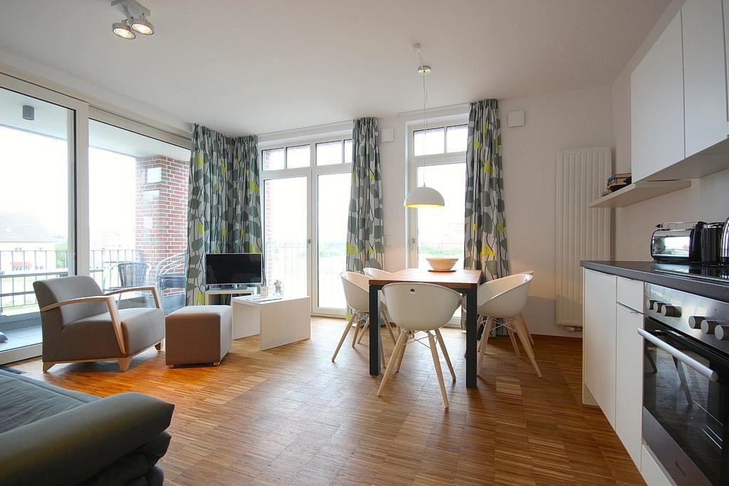 Die moderne Ferienwohnung befindet sich in Süd-West-Lage im Erdgeschoss der Villenanlage. Der weitläufige Sandstrand und die Promenade sind nur wenige Meter entfernt. In der unmittelbaren Umgebung findet ihr zahlreiche Einkaufsmöglichkeiten, Restaurants und Cafés. Freizeitangebote wie z. B. das Meerwasser-Freizeitbad, das Tennis-Center oder die Surfschule sind fußläufig bequem zu erreichen.