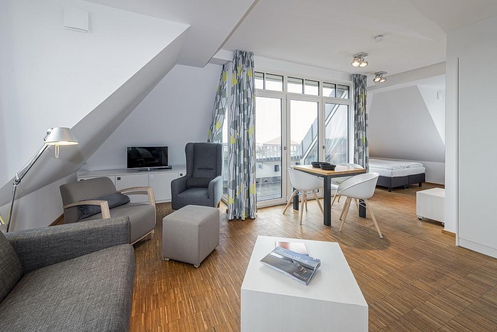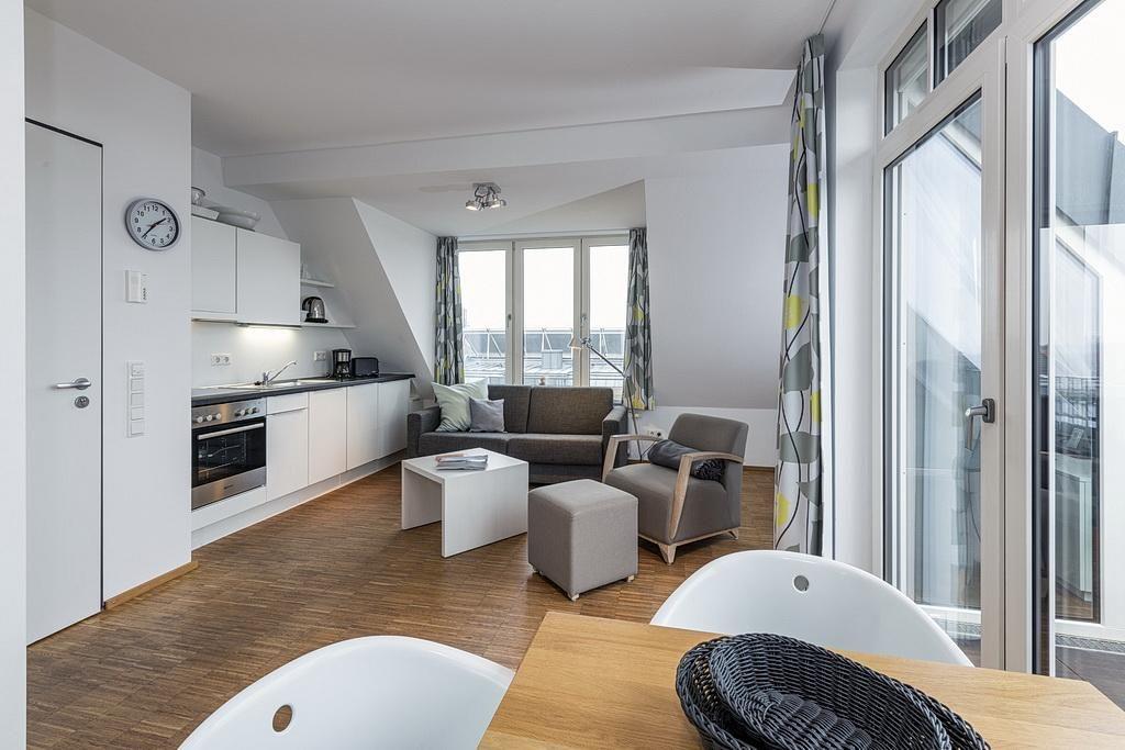 Das überaus gemütliche Apartment ist barrierearm und verfügt über Meerblick. Der Wohn-Schlafraum bietet euch eine voll ausgestattete offene Küche mit Geschirrspüler, Gefrierfach, Kaffeemaschine, Toaster, Wasserkocher und Backofen sowie ein Doppelbett (1,40 m x 2 m), eine Doppelschlafcouch, einen Flatscreen-TV und WLAN. Ein Kinderbett kann gegen Entgelt aufgestellt werden. Im modernen und hellen Badezimmer befinden sich eine begehbare Dusche sowie ein Waschtisch mit Föhn und Kosmetikspiegel. Auf der geschützten Loggia in West-Lage könnt ihr den Urlaubstag bei einem Sundowner in der Abendsonne ausklingen lassen.