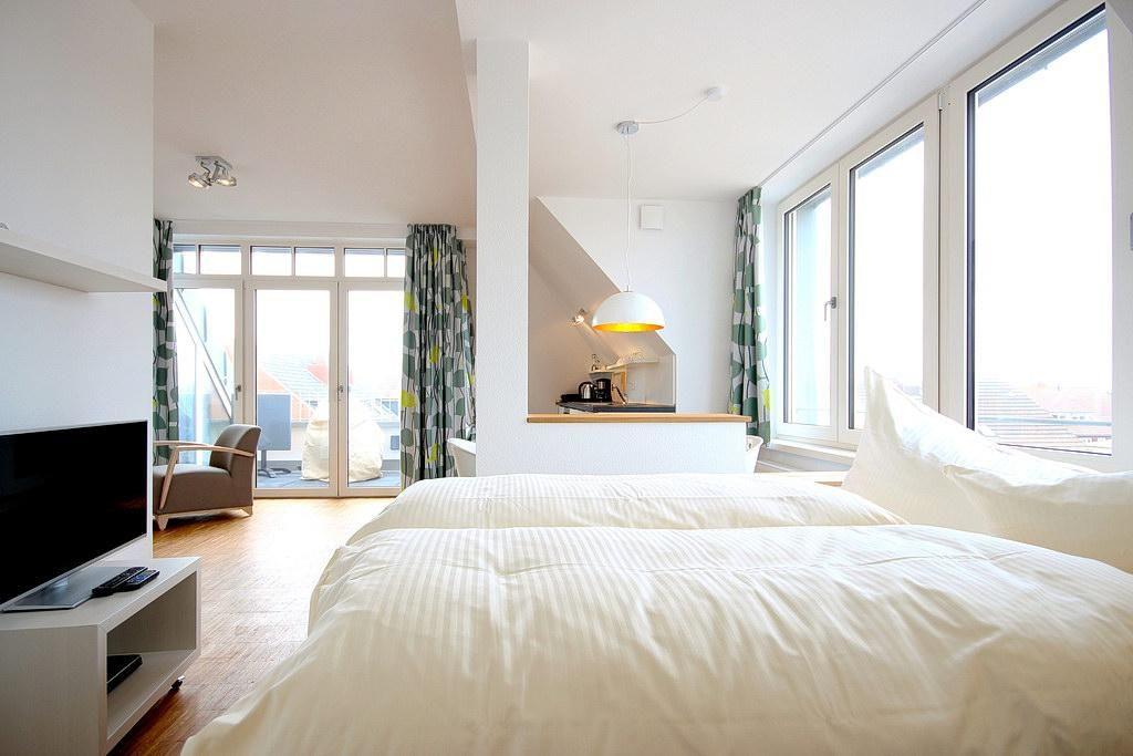 Das barrierearme und helle Apartment verfügt über kostenfreies WLAN und eine voll ausgestattete offene Küche mit Geschirrspüler, Gefrierfach, Kaffeemaschine, Toaster, Wasserkocher und Backofen. Im überaus gemütlichen Wohn-Schlafbereich des Apartments stehen euch - abgetrennt durch eine niedrige Wand und sehr gemütlich in einer Nische - ein Doppelbett (1,40 x 2 m) sowie ein Flatscreen-TV zur Verfügung. Im modernen und hellen Badezimmer befindet sich eine begehbare Dusche sowie ein Waschtisch mit Föhn und Kosmetikspiegel. Auf dem sonnigen Südbalkon könnt ihr den ganzen Tag die Sonne und das wohltuende Meeresklima genießen. Das Apartment verfügt über eine Kommode anstatt eines Kleiderschrankes.